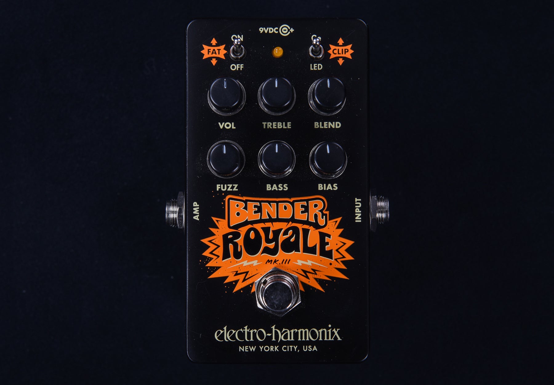"The history of the 3-transistor fuzz is storied and colorful with many makers and iterations. EHX submits its chapter in the story as the Bender Royale fuzz! A take on the Mkiii version of the vintage germanium-based circuit, the Bender Royale takes the splendidly saturated sound of the original and opens up a world of fuzz tones from thick and smooth, to brash and sputtery. If you’re into trashy, ripping fuzz or big, fat saturated tones, the Bender Royale will get you there.