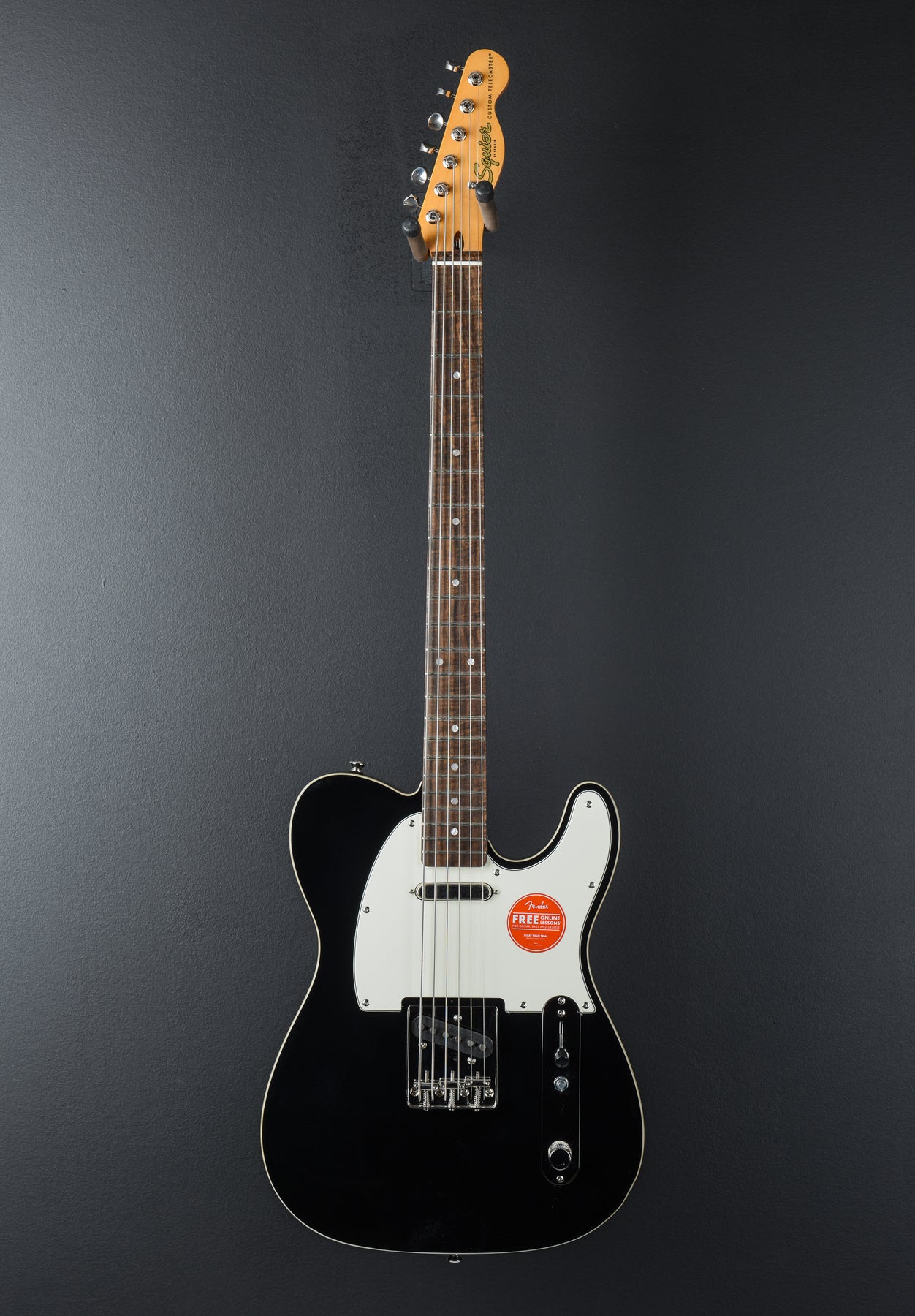Black, Crafted in Indonesia, Double bound Nyatoh body, Gloss polyurethane body finish, C shaped Maple neck with a 9.5” radius Indian Laurel fingerboard and narrow tall frets, 27" scale length, 1.650" nut width, Fender designed Alnico single coil Tele bridge and neck pickups, 3-way switching with the master volume and tone controls, Vintage style string thru body Tele bridge with the three chrome barrel saddles, Vintage style tuners, 7.5 pounds, Case not included