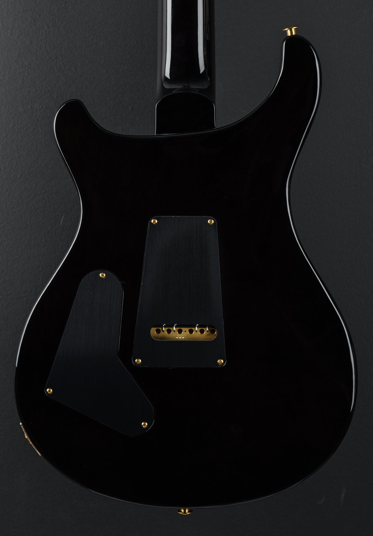 Black Gold Wraparound Burst, High gloss nitro finish, Violin carved Flame Maple 10 top, Mahogany body, Pattern Thin carved Mahogany neck, 10″ radius Rosewood fingerboard with the Bird inlays, 25″ scale length, 1 11/16th” nut width, 85/15 bridge and neck pickups plus the PRS/L.R. 5-way blade switching with the volume and tone controls plus a 3-way selector PRS patented Gen III tremolo, PRS Phase III locking tuners with the wing buttons, 7.65 pounds, With hardshell case