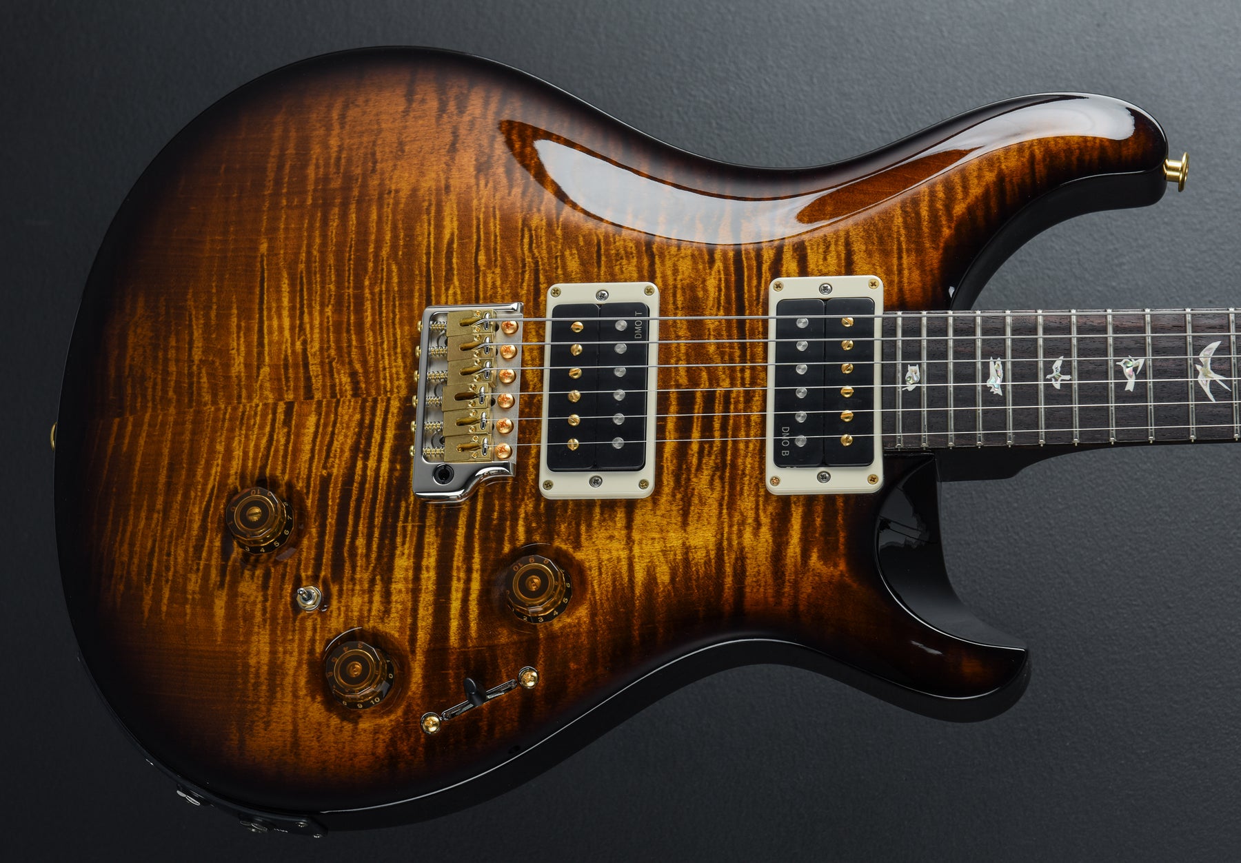 The Custom 24 Piezo boasts PRS DMO treble and bass pickups. PRS’s DMO (Dynamic, Musical, Open) pickups were personally designed by Paul Reed Smith and the PRS New Products Engineering team. From our own hands-on research into coveted vintage pickup models to advancements in signal analyzation and “tuning” technology, these pickups incorporate every detail of pickup knowledge PRS has gained in recent years of R&D. PRS DMO pickups have a “wide open” sound with vocal character, meaning they deliver clear, pleasant-sounding tones across a wide range of frequencies (bass to treble) in each pickup.