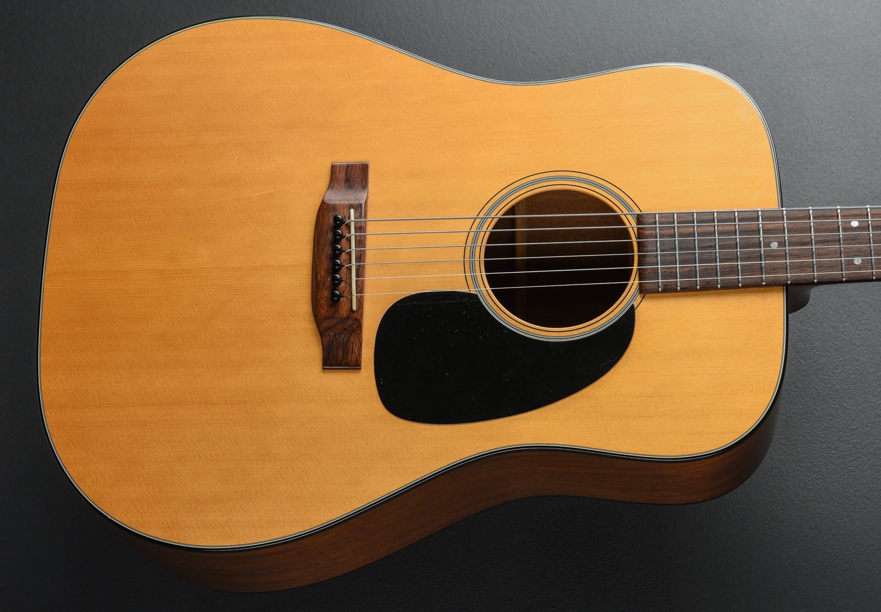Natural, D-14 Fret body shape, Sitka Spruce top, X bracing, Mahogany back and sides, soft V shaped Mahogany neck with a 16" radius Rosewood fingerboard, Rosewood bridge, 25.4" scale length, 1 11/16th" nut width, The neck depth is .86" at the 1st fret and .98" at the 9th fret, Grover tuners, With original hardshell case, Very good