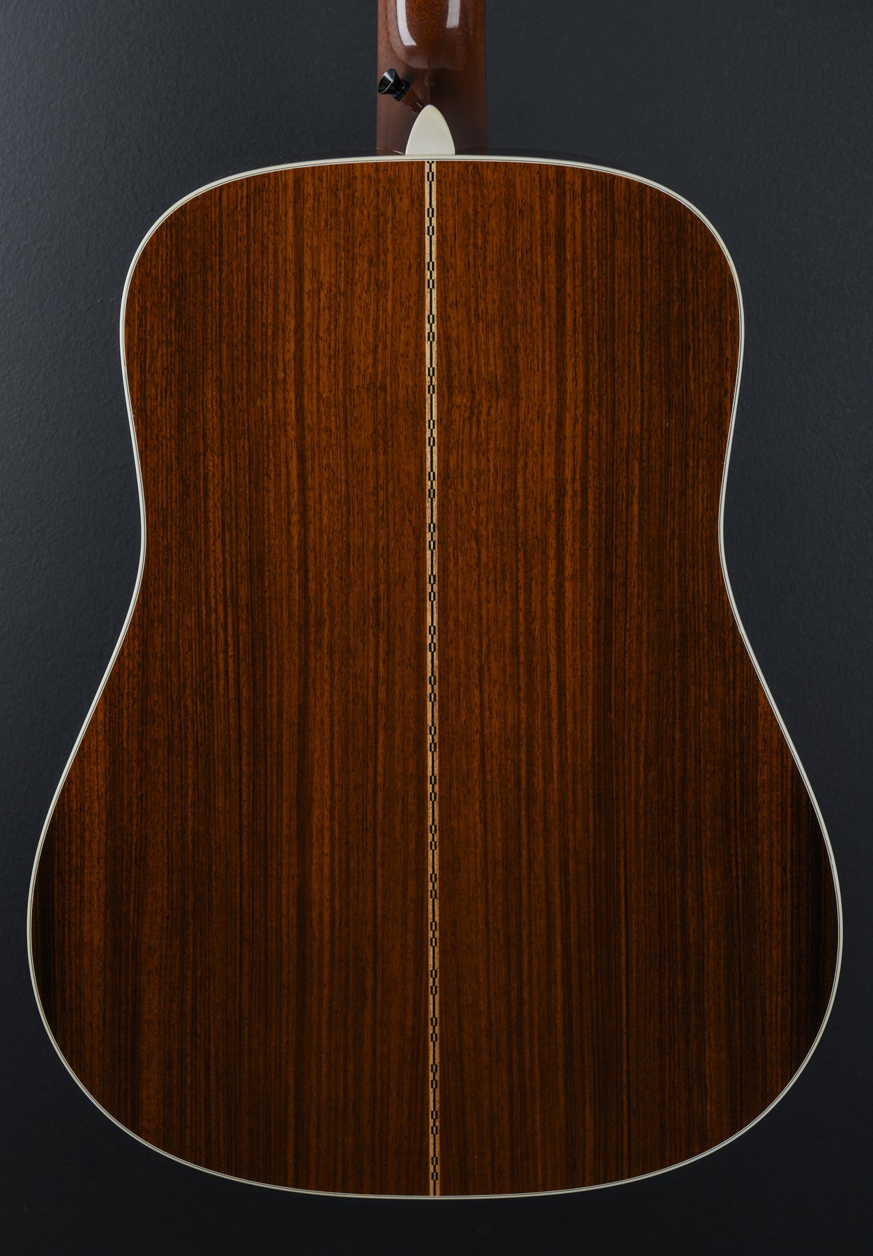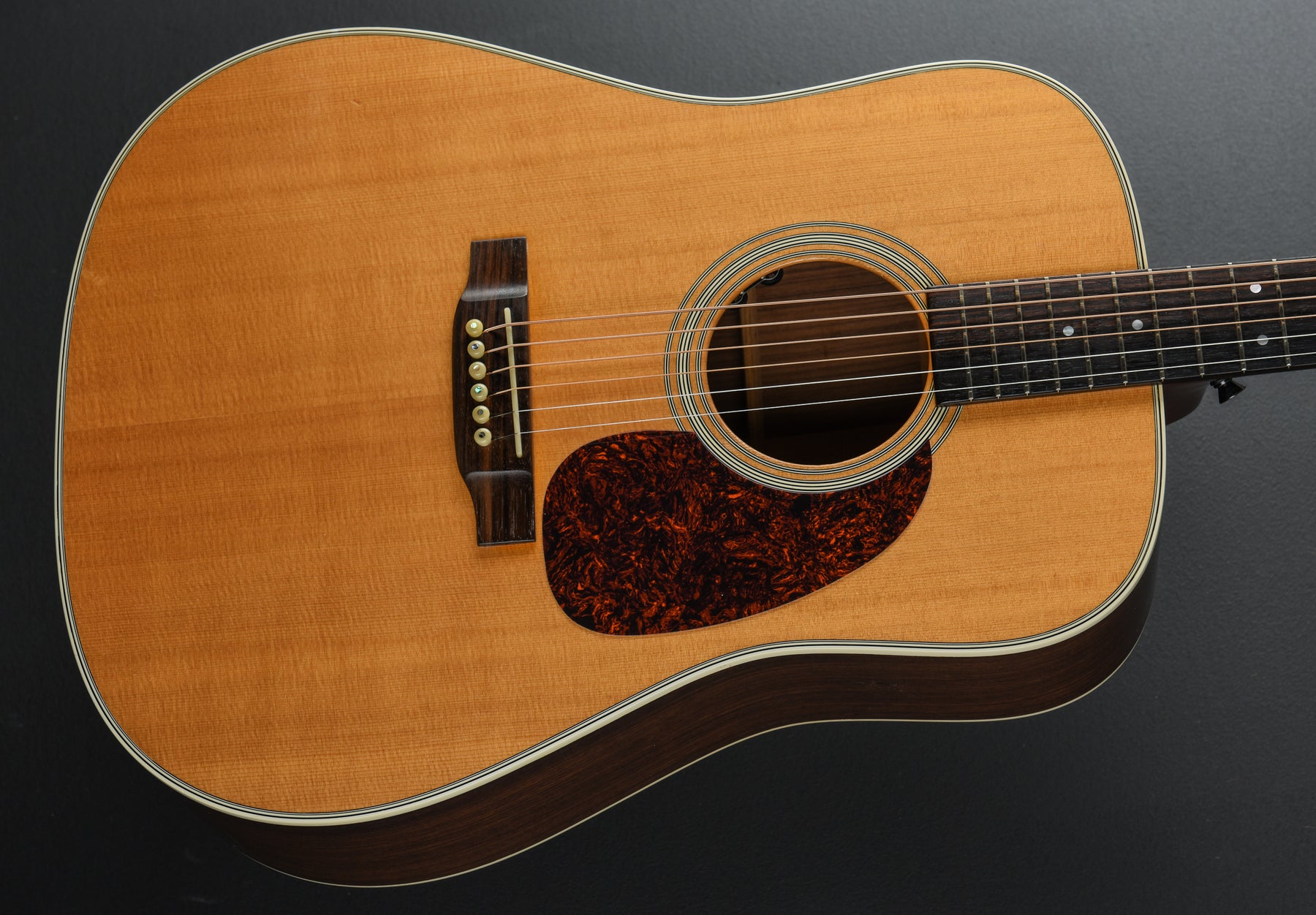 Very Good Condition, Natural Gloss Finish, Dreadnought Body Shape With Solid Sitka Spruce Top and Solid East Indian Rosewood Back and Sides, Forward-Shifted X-Braced Scalloped Bracing, Select Hardwood Neck With a 16″ Radius Ebony Fingerboard and 20 Frets, Mother of Pearl Style 28 Dot Inlays, 25.4″ Scale Length, 1 11/16″ Bone Nut Width, Rosewood Bridge With Drop-In Bone Saddle, Nickel Closed-Gear Tuners, White Binding With Multi-Stripe Top Inlay and Style 28 Rosette, L.R. Baggs Element Pickup Installed, Comes With a Hardshell Case.