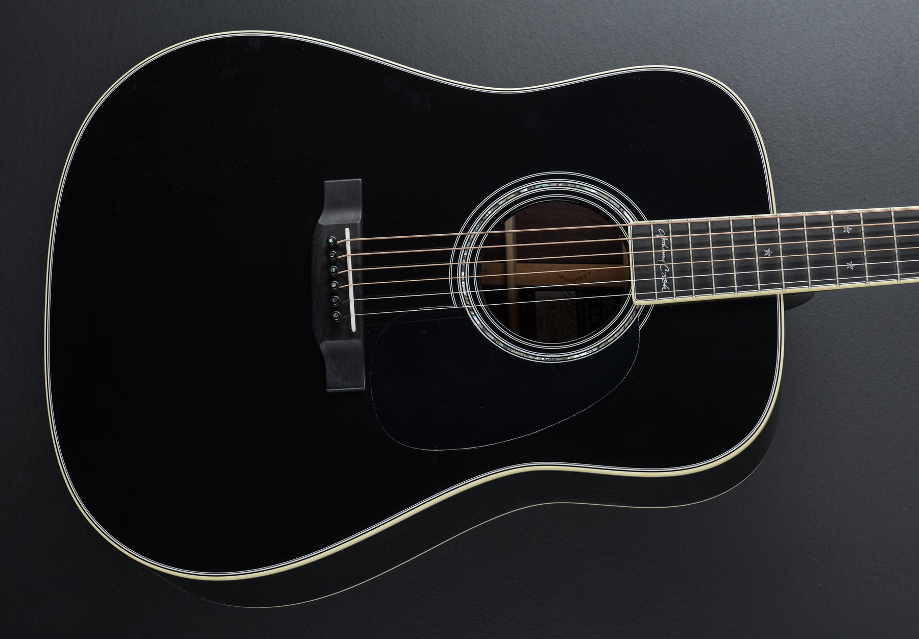 "Perhaps Johnny Cash’s most favorite Martin guitar (and he played many) was a specially made D-35, his – and Martin’s – first guitar with a polished black finish. Perfect for "the man in black," Cash played this guitar on stage for nearly 20 years. Now Martin has paid tribute to this musical legend with a close facsimile of that special instrument: the D-35 Johnny Cash Commemorative."