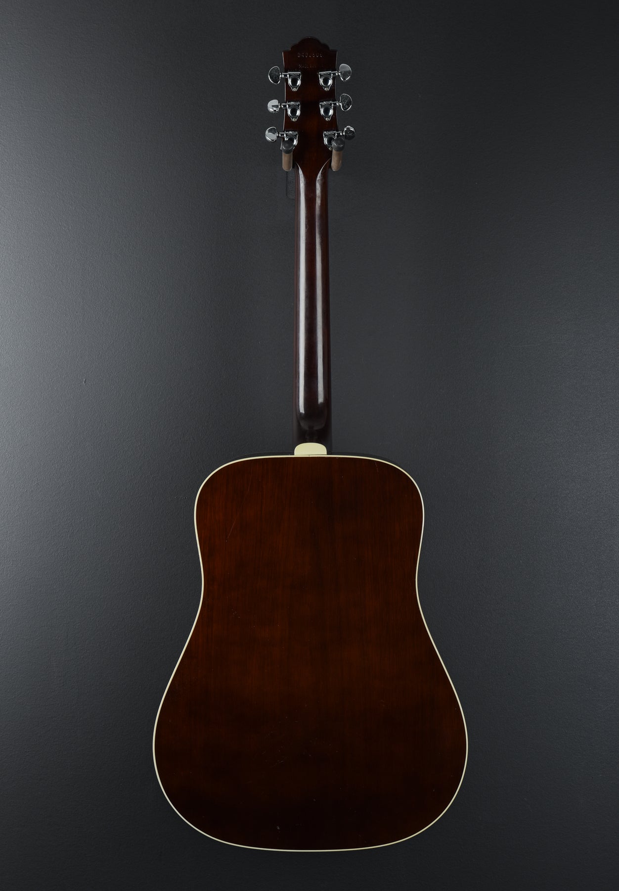 Very Good Condition, Natural Gloss Finish, Dreadnought Body Shape, Spruce Top with Mahogany Back and Sides, Small C-Shaped Mahogany Neck with a 12" Radius Rosewood Fingerboard and Medium Jumbo Frets, 25.5" Scale Length, 1 11/16" Nut Width, Grover Tuners, Tortoise Shell Pickguard, Comes with a Hardshell Case.