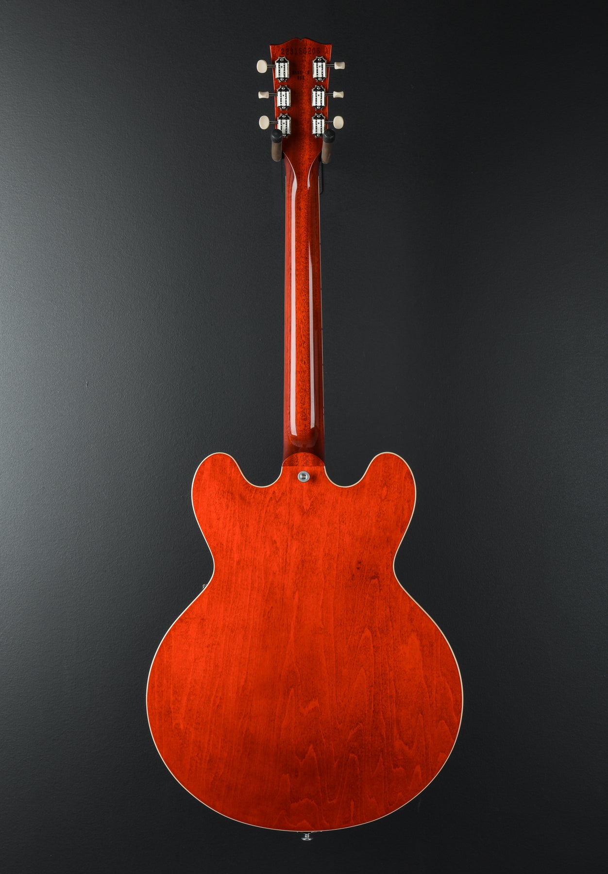 "The Gibson ES-330 has garnered a reputation for its distinctive sound, comfortable playability, and classic aesthetics, making it a favorite among musicians seeking a versatile, vintage-inspired ES™-style electric guitar. A close cousin of the Epiphone Casino™, the ES-330 shares a similar lightweight, fully hollow thinline body made of 3-ply maple/poplar/maple. It is supremely resonant and warm-sounding due to its hollow body, trapeze tailpiece, and deep-set neck that creates an optimized bridge location. The mahogany neck has a comfortable Rounded “C” profile and features a rosewood fretboard with acrylic small block inlays and 22 medium jumbo frets. The 12” fretboard radius is equally comfortable whether you’re playing clean and jangly chords at the first fret or searing lead lines with heavy string bends up high. The trapeze tailpiece adds to the visual and sonic appeal of the ES-330, while the fully adjustable ABR-1 bridge ensures spot-on intonation. The Vintage Deluxe tuners feature white buttons for even more visual flair and, along with the Graph Tech® nut, help keep this thinline hollowbody solidly in tune.