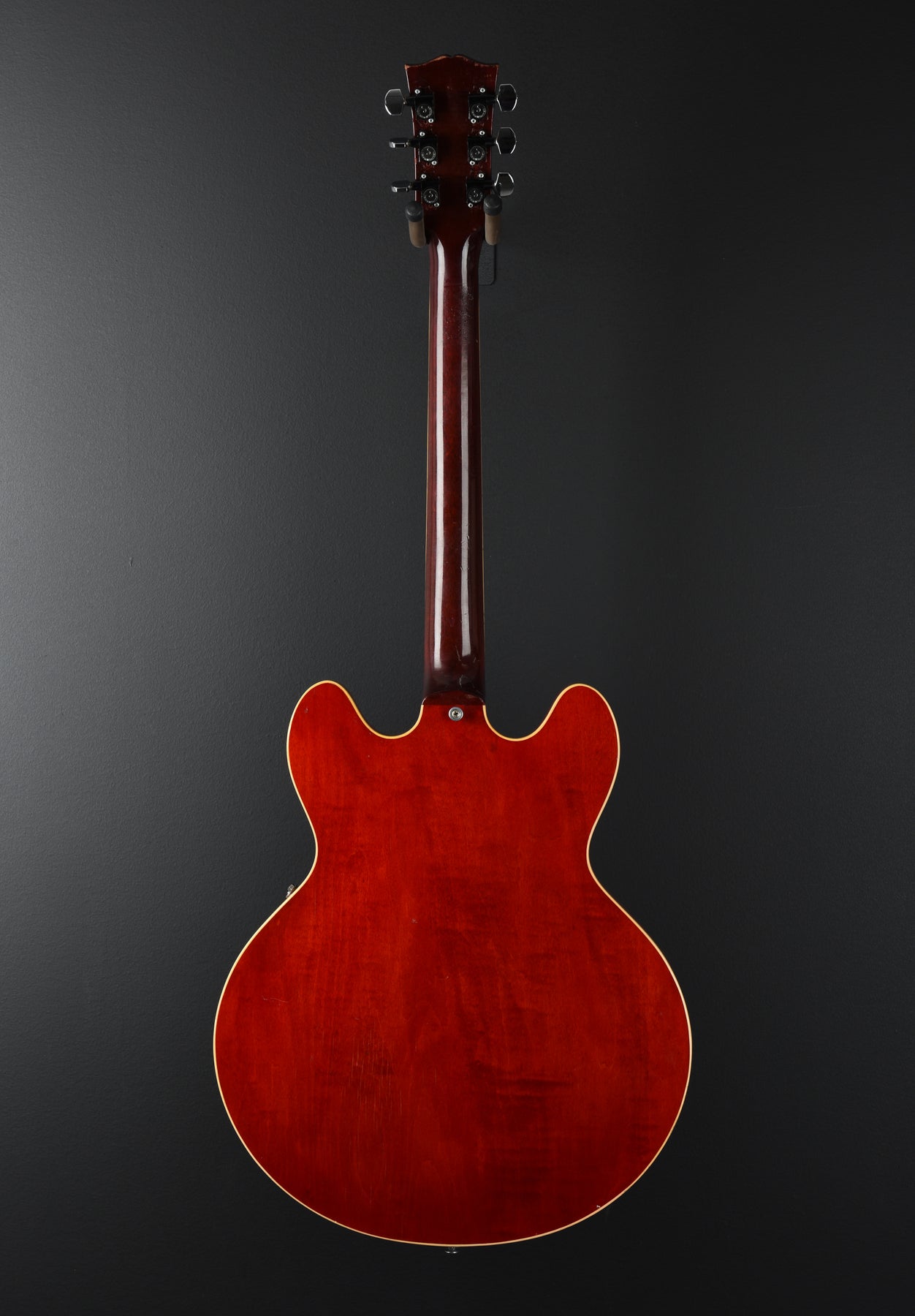 Cherry, Hollow laminated Maple body, Slim taper shaped Mahogany neck, Bound 10" radius Rosewood fingerboard with the small block inlays and the original low profile frets, 24.75" scale length, 1 11/16th" nut width, Original Gibson P-90 bridge and neck pickups, 3-way toggle switch and individual Volume and Tone knobs for each pickup. ABR-1 tune-o-matic bridge with the nylon saddles, original Trapeze Tailpiece, replaced Schaller tuners, 6.1 pounds, With a Original Hardshell Case, Very good.