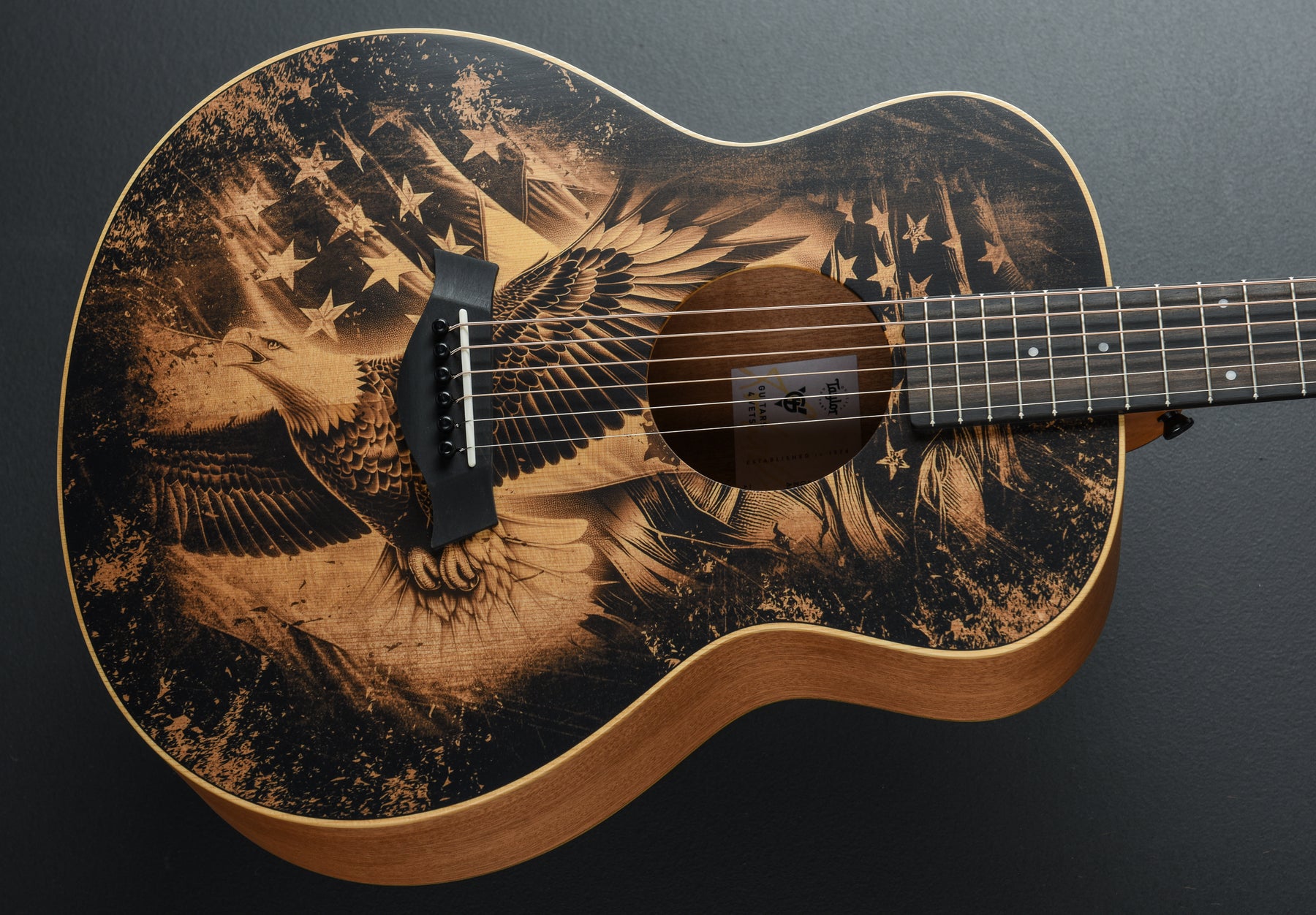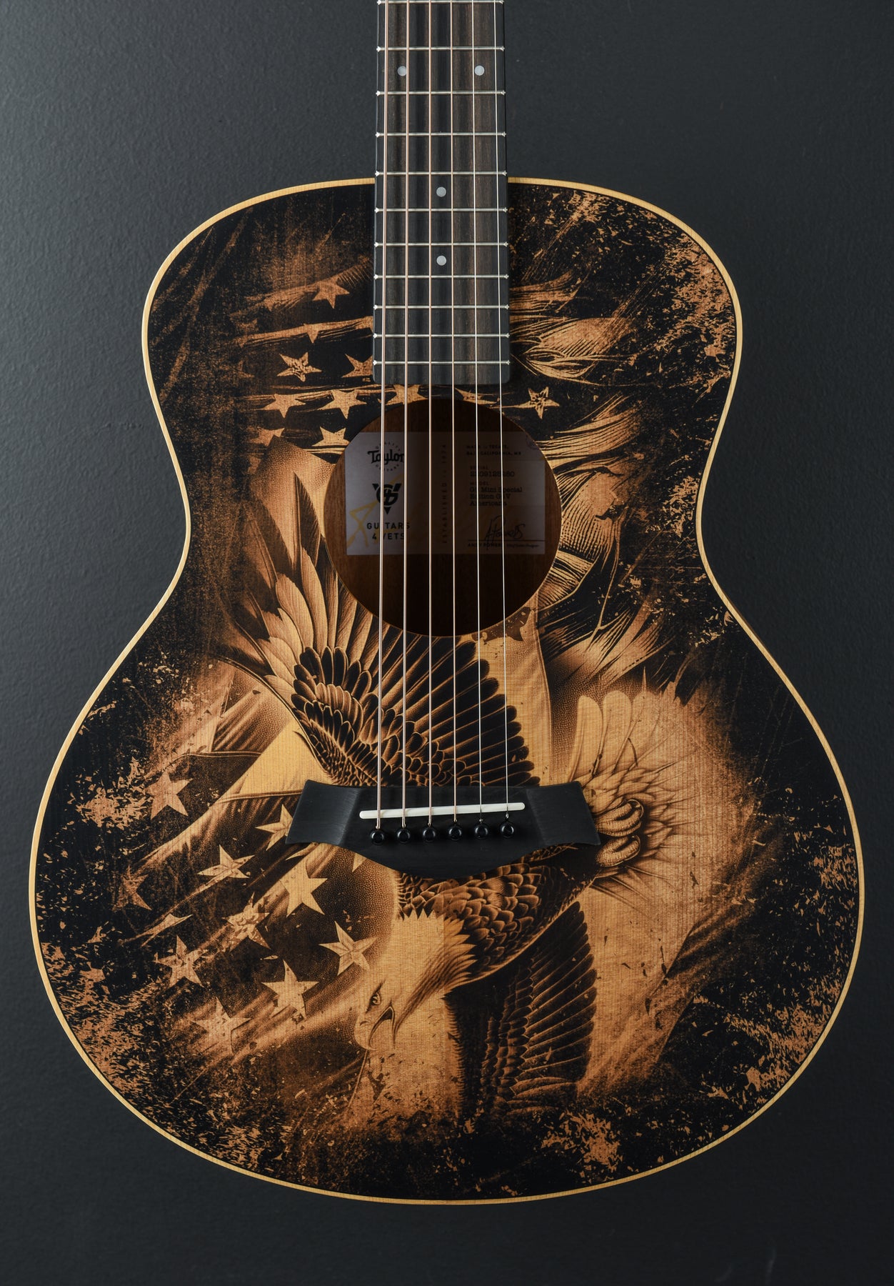 "For years, Taylor’s partnership with Guitars 4 Vets has helped make music a tool for healing veterans affected by PTSD and other service-related trauma. We’re proud to continue that mission with the Guitars 4 Vets GS Mini Americana Special Edition - an exclusive custom design that visually honors America’s veterans. With its compact dimensions, the GS Mini is perfect for travel, casual practice, campfire jams or songwriting sessions. The easy-playing Taylor neck makes it a great choice for players of any skill level, while the solid torrefied Sitka spruce top delivers a bold, dynamic voice. This special-edition model features custom artwork, Italian acrylic dot inlays, chrome tuners and a matte finish on the body and neck. It ships with a structured gig bag featuring built-in backpack straps for easy portability."