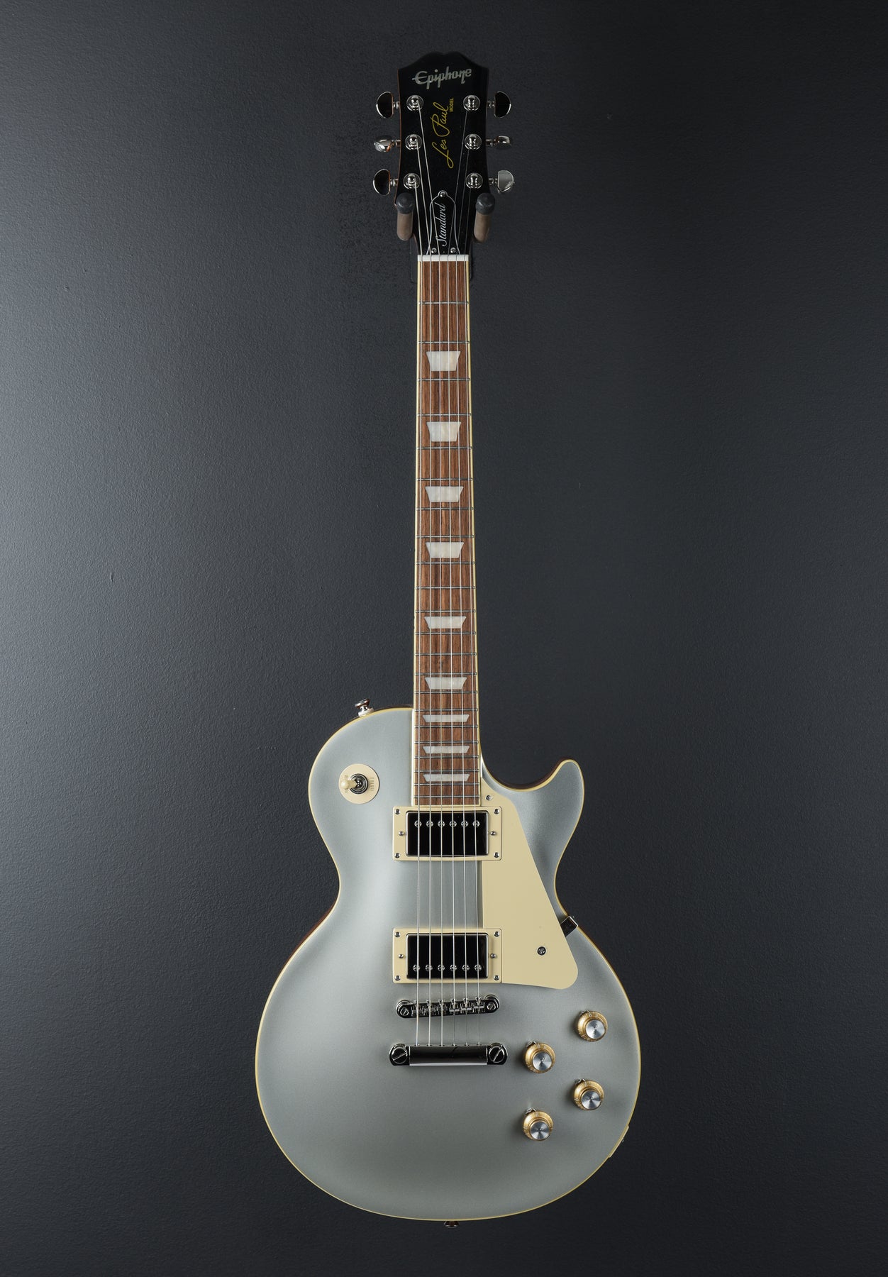 Brand New, Silver Mist Gloss Finish, Maple Top on a Mahogany Body, Slim Taper 60's C Shaped Mahogany Neck, Bound 12" Radius Indian Laurel Fingerboard with Pearloid Trapezoid Inlays and Medium Jumbo Frets, 24.75" Scale Length, 1.69" Nut Width, Epiphone ProBucker 3 Bridge and ProBucker 2 Neck Pickups, 3-Way Toggle Switching and Volume and Tone Controls for Each Pickup, Epiphone LockTone Tune-O-Matic Bridge and Stop Tailpiece, Grover Rotomatic Tuners, 8.7 Pounds, Comes with a Gig Bag.