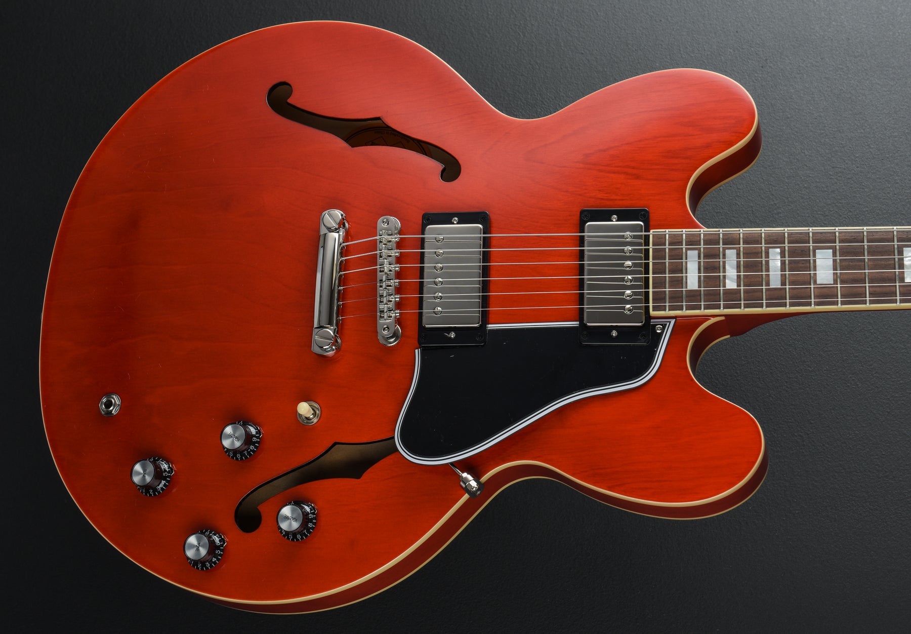 Sixties Cherry, Vintage gloss finish, Semi-hollow five-ply Layered Maple/Poplar body with the Maple centerblock, 1960's slim taper C shaped Mahogany neck, Bound 12" radius Rosewood fingerboard with the mother of pearl small block inlays and medium jumbo frets, 24.75" scale length, 1.692" nut width, the neck measures .88" at the 1st and 1.01" at the 12th frets, Gibson Custombucker bridge and neck pickups, 3-way toggle switching with the volume and tone controls for each pickup, ABR-1 tune-o-matic bridge and Gibson historic reissue aluminum stop tailpiece, Epiphone deluxe double ring tuners, 8.4 pounds, With the historic-inspired hardshell case