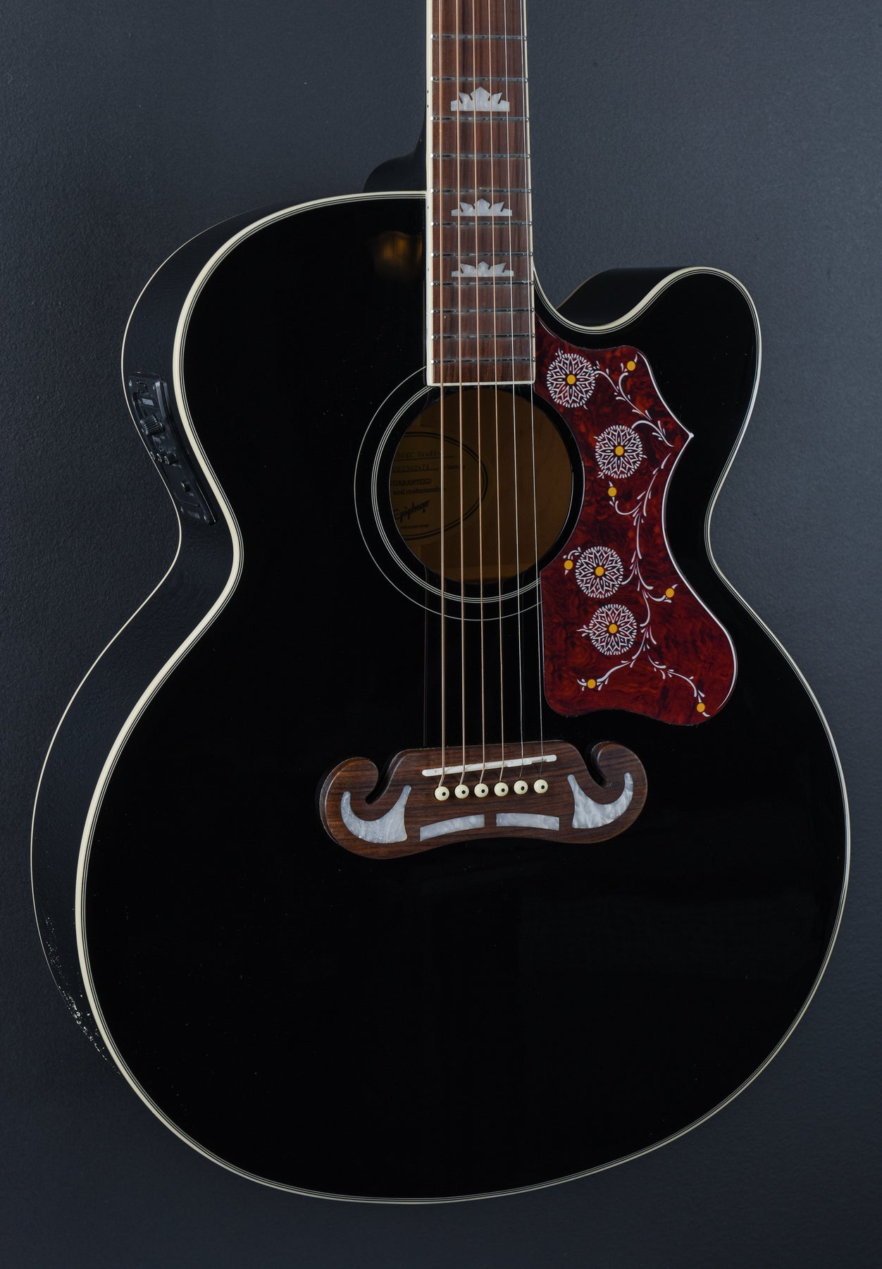 "The J-200 EC pays homage to the King of the Flattops - the classic Gibson™ SJ-200. This Inspired by Gibson Epiphone features a cutaway Super Jumbo body with select maple back and sides, solid spruce top for outstanding tone, a smooth-playing hard maple neck with a SlimTaper™ D profile, pau ferro fretboard, 20 medium jumbo frets, and classy pearloid crown inlays. The bridge has the legendary Moustache™ shape and the pickguard features iconic J-200™ graphics. Comes equipped with a Fishman® Sonicore™ under-saddle pickup and Presys™ preamp with built-in tuner. A battery is not included. To power your pickup, you will need a 9-volt battery. (Previously called Epiphone EJ-200SCE Acoustic/Electric)"