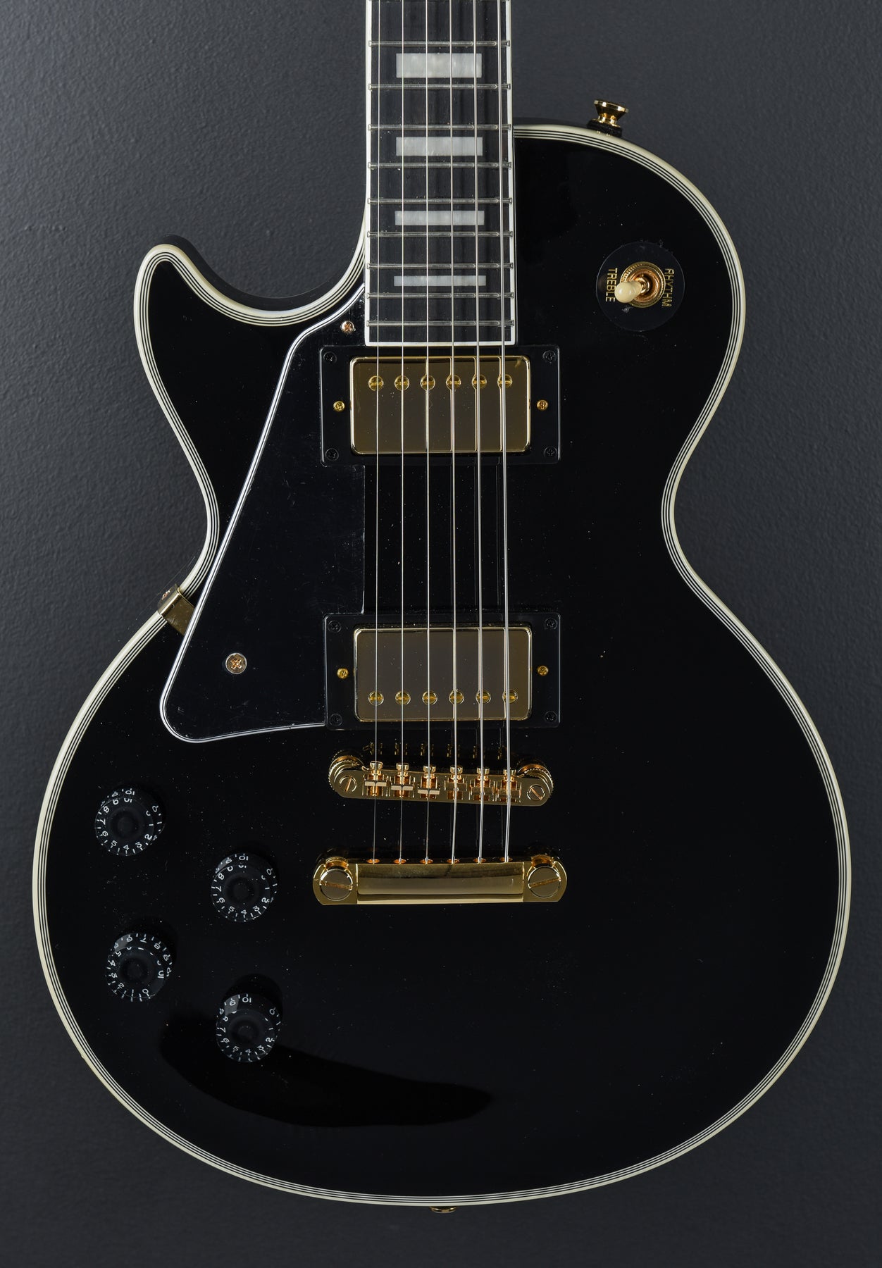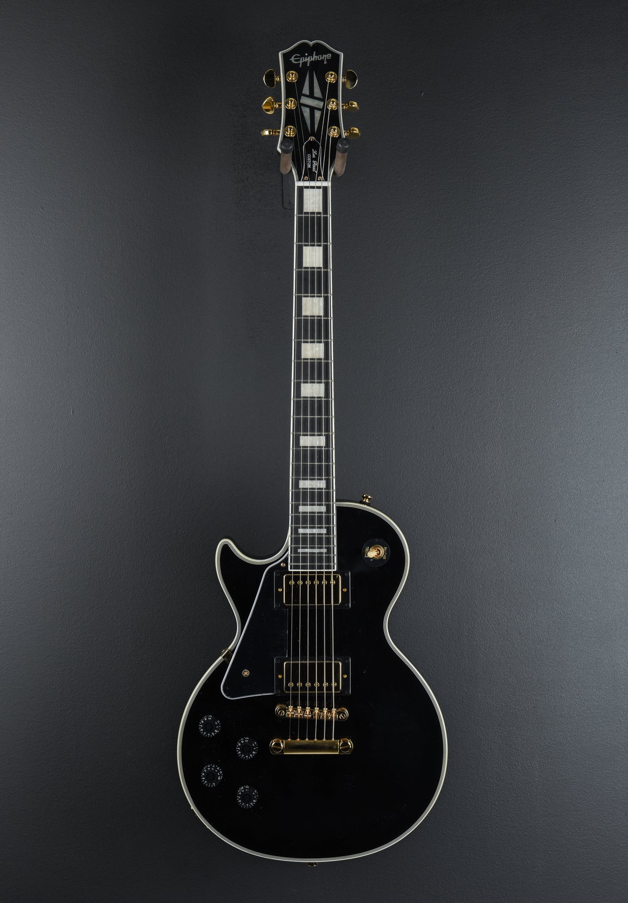 "The new Les Paul Custom is part of Epiphone’s Inspired by Gibson Collection and honors the 1950s classic designed by Mr. Les Paul himself in 1954 as the “tuxedo” version of his groundbreaking solid body masterpiece. Featuring the traditional Custom bound all-mahogany body, 60s SlimTaper™ neck profile, ebony fingerboard with block inlays, gold Epiphone LockTone™ Tune-O-Matic™ bridge and Stop Bar tailpiece, a pair of critically acclaimed Epiphone ProBucker™ humbuckers, and Custom split-diamond inlay on the headstock. This Epiphone Inspired by Gibson model also has the 60s style Kalamazoo headstock, rolled neck for a comfortable feel, Graph Tech® NuBone® nut, era-appropriate wiring, and CTS® pots. Optional hardshell or EpiLite Case is available."