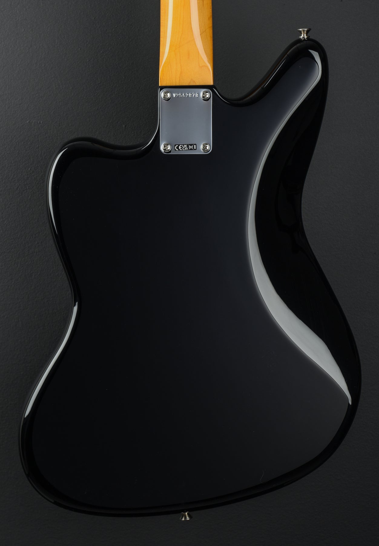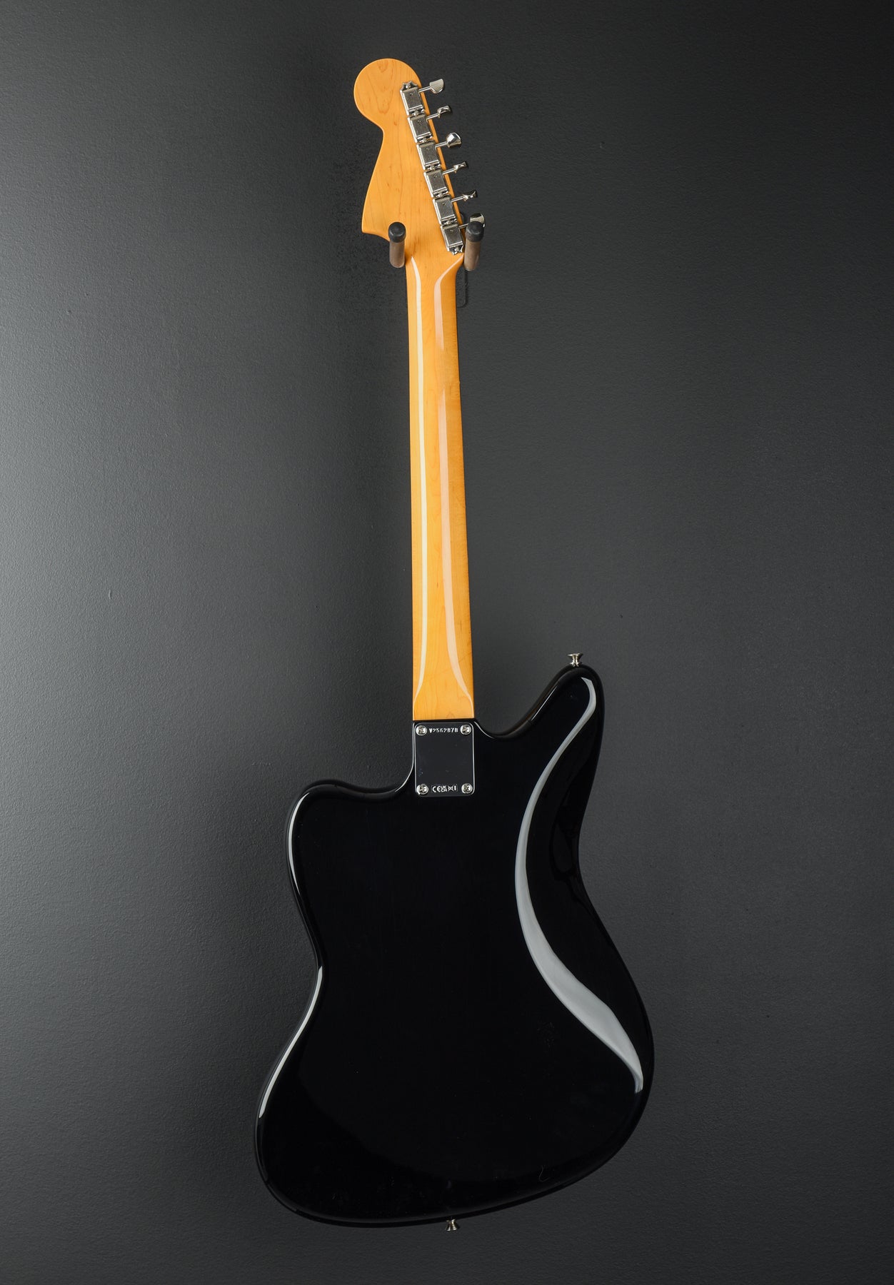 Black, Gloss nitrocellulose lacquer finish, Alder body, Custom shaped Maple neck that was based on Johnny’s ’65 Jaguar, 9.5” radius Rosewood fingerboard with the ivory dot inlays and vintage size frets, 24" scale length, 1.650" nut width, Custom wound Kent Armstrong Johnny Marr single coil Lipstick pickups, Four position switching: position 1. bridge pickup, position 2. bridge and neck pickups (in parallel), position 3. neck pickup, position 4. neck and bridge pickups (in series), Master volume and tone controls, Two slide switches (universal bright switch and bright switch for blade position 4) and a third three position slide switch (middle pickup off/on/only), Jaguar bridge with the Mustang saddles, Vintage style floating tremolo tailpiece and American Vintage tuners, 8.9 pounds, With hardshell case