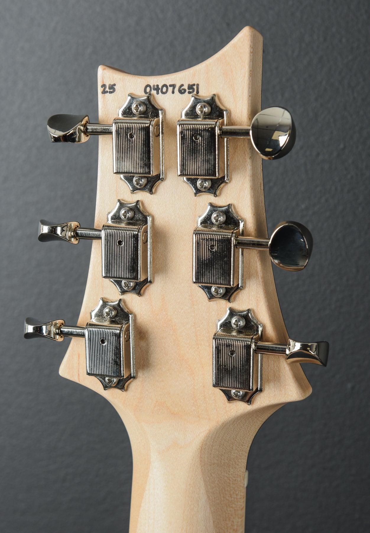 Platinum Metallic, High gloss nitro body finish, Swamp Ash body, Myles Kennedy shaped Maple neck, 10” radius Maple fingerboard with the Bird inlays, 25.5” scale length, 1 41/64th" nut width, Narrowfield MK bridge and neck pickups, 5-way blade switching with the master volume and push/pull tone control, PRS plate style steel bridge with the two compensated brass barrel saddles, Vintage style locking tuners, 7.8 pounds, With gig bag