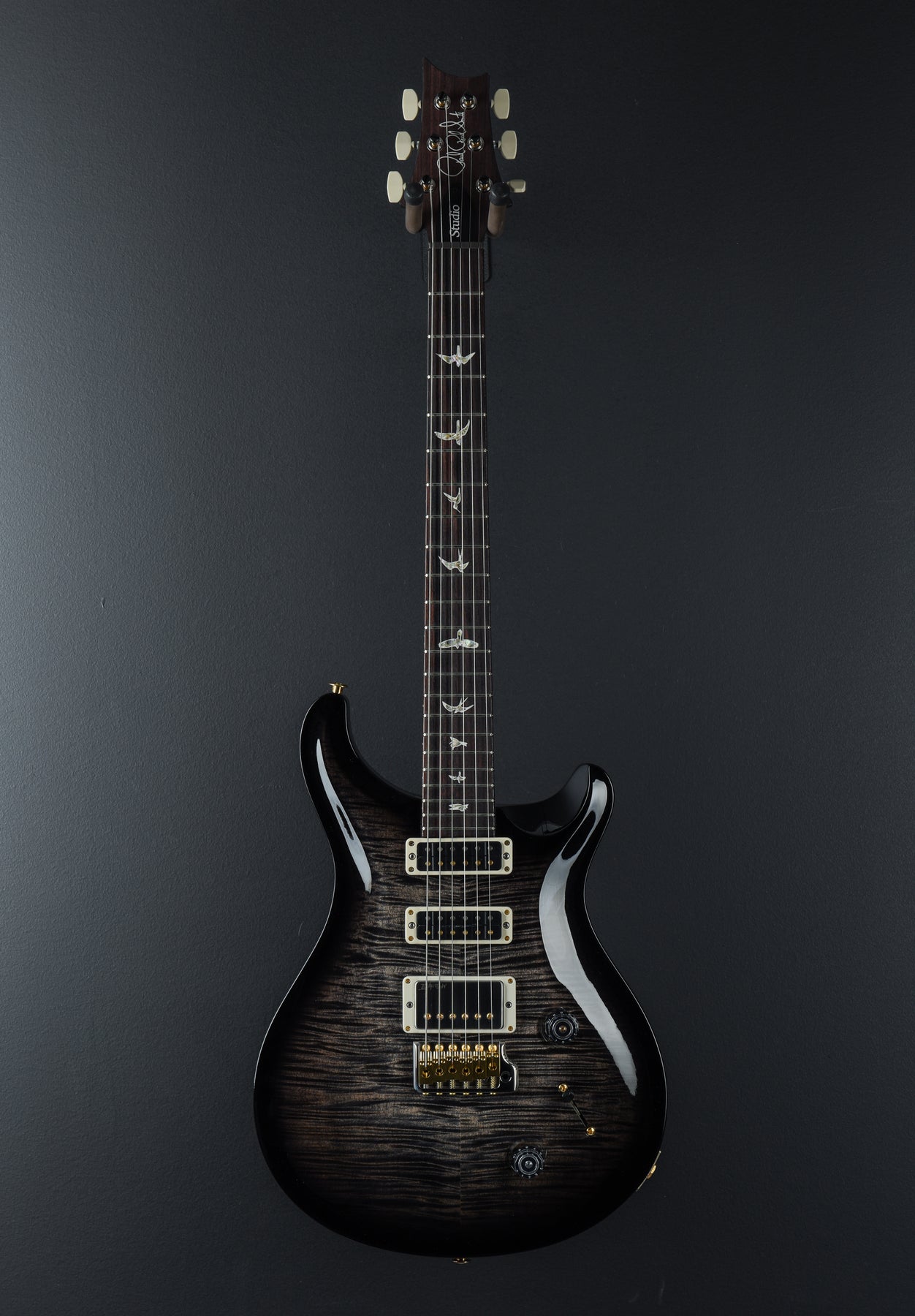 Charcoal Burst, High gloss nitro finish, Violin carved Flame Maple 10 top, Mahogany body, Pattern carved Mahogany neck, 10" radius Rosewood fingerboard with the Bird inlays, 25″ scale length, 1 11/16th" nut, PRS McCarty III bridge and PRS Narrowfield middle/neck pickups, 5-way blade switching with the volume and push/pull coil tap tone controls, PRS Gen III tremolo, PRS Phase III locking tuners with the wing buttons, 8.2 pounds, With hardshell case