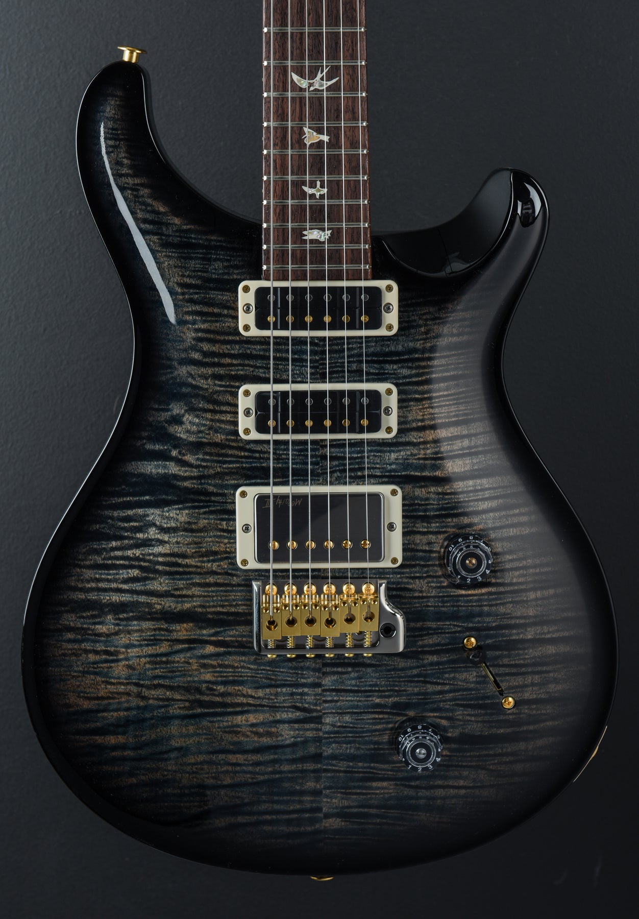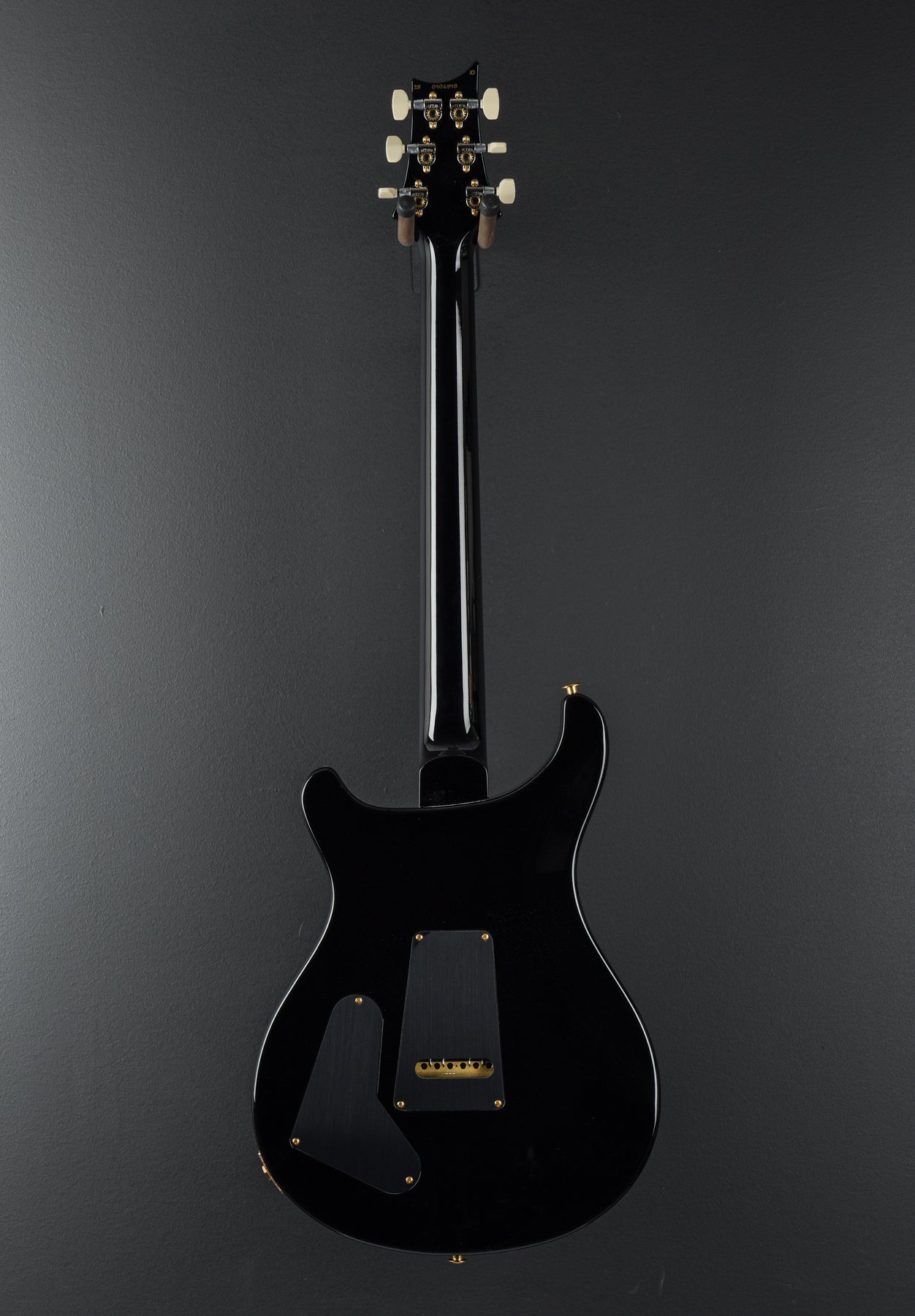 Cobalt Smokeburst, High gloss nitro finish, Violin carved Flame Maple 10 top, Mahogany body, Pattern carved Mahogany neck, 10" radius Rosewood fingerboard with the Bird inlays, 25″ scale length, 1 11/16th" nut, PRS McCarty III bridge and PRS Narrowfield middle/neck pickups, 5-way blade switching with the volume and push/pull coil tap tone controls, PRS Gen III tremolo, PRS Phase III locking tuners with the wing buttons, 8.2 pounds, With hardshell case
