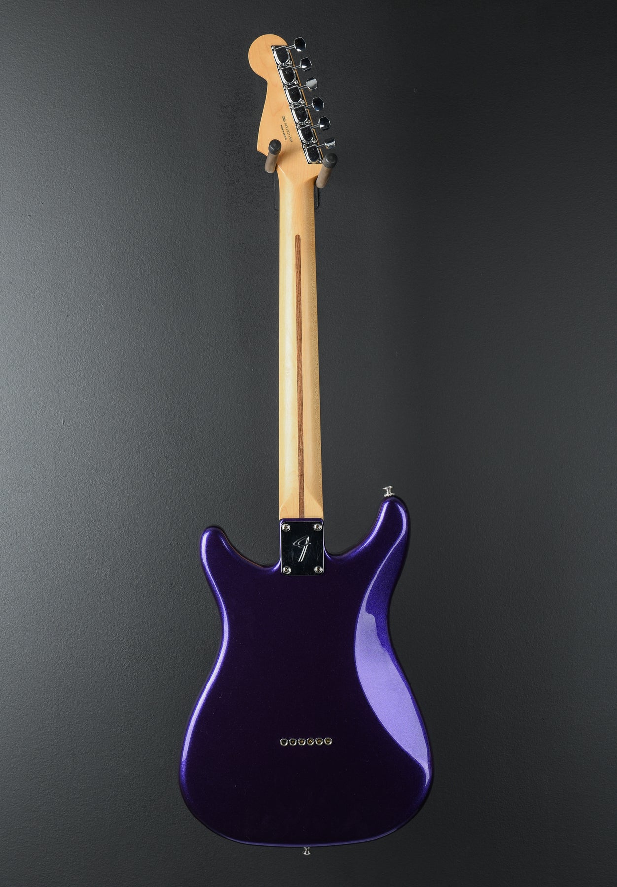 Very Good Condition, Made in Mexico, Metallic Purple Finish, Alder Body, Modern "C" Shaped Maple Neck, Pau Ferro Fingerboard, 22 Medium Jumbo Frets, 9.5" Fingerboard Radius, 25.5" Scale Length, 1.650" Synthetic Bone Nut, 6-Saddle String-Through-Body Hardtail Bridge with Block Saddles, 3-Ply Black Pickguard, Knurled Flat-Top Control Knobs, Fender Vintage "F" Stamped Tuners, Player Series Alnico 2 Humbucking Bridge and Neck Pickups, Master Volume and Master Tone Controls, 3-Position Toggle: Position 1. Bridge Pickup, Position 2. Bridge and Neck Pickups, Position 3. Neck Pickup, 7.5 Pounds, No Case or Gig Bag Included.