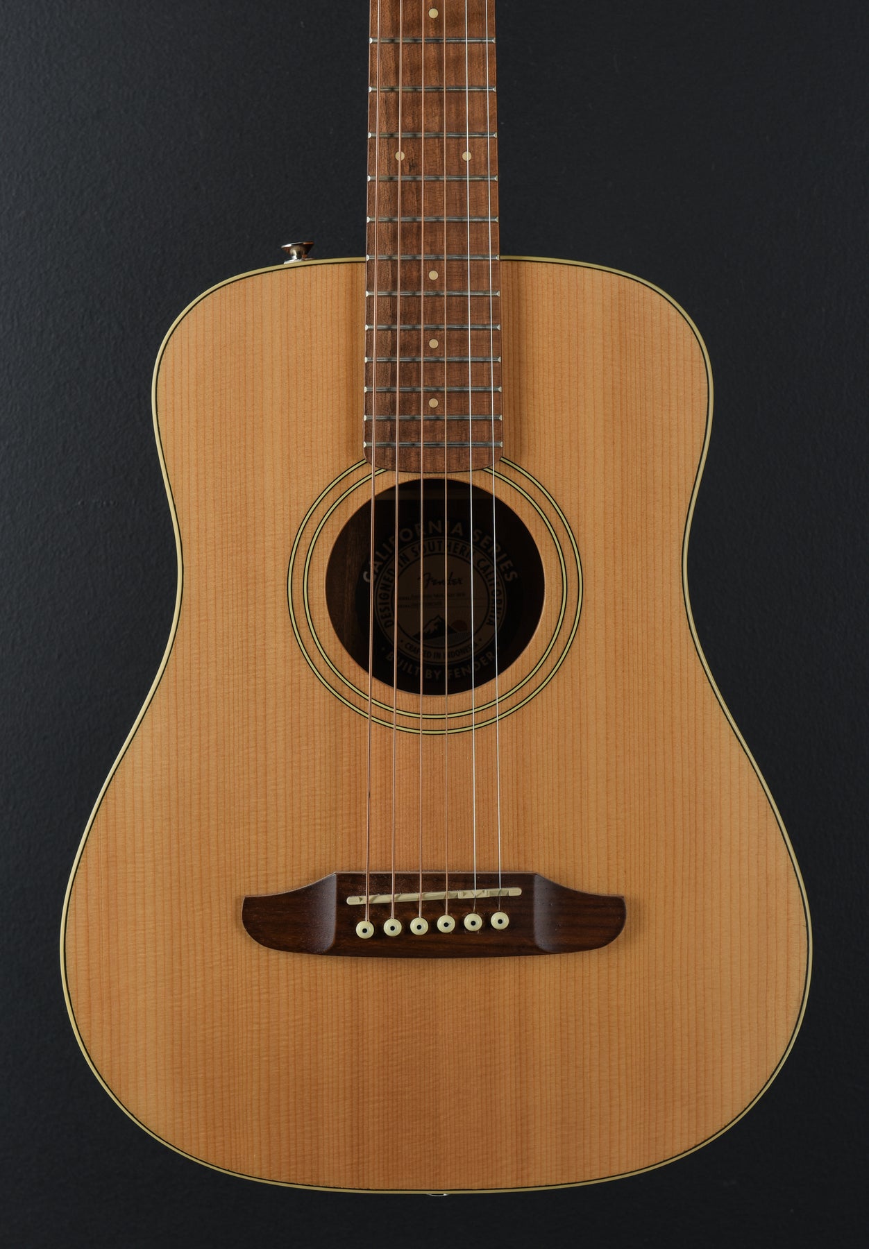 Fender-exclusive Redondo Mini body shape, Spruce top with scalloped “X” bracing; mahogany back and sides, ½ body size; 22 ¾” scale length, Nato neck with slim-taper "C"-shaped profile; walnut fingerboard and bridge, 6-in-line headstock, no case or gig bag.