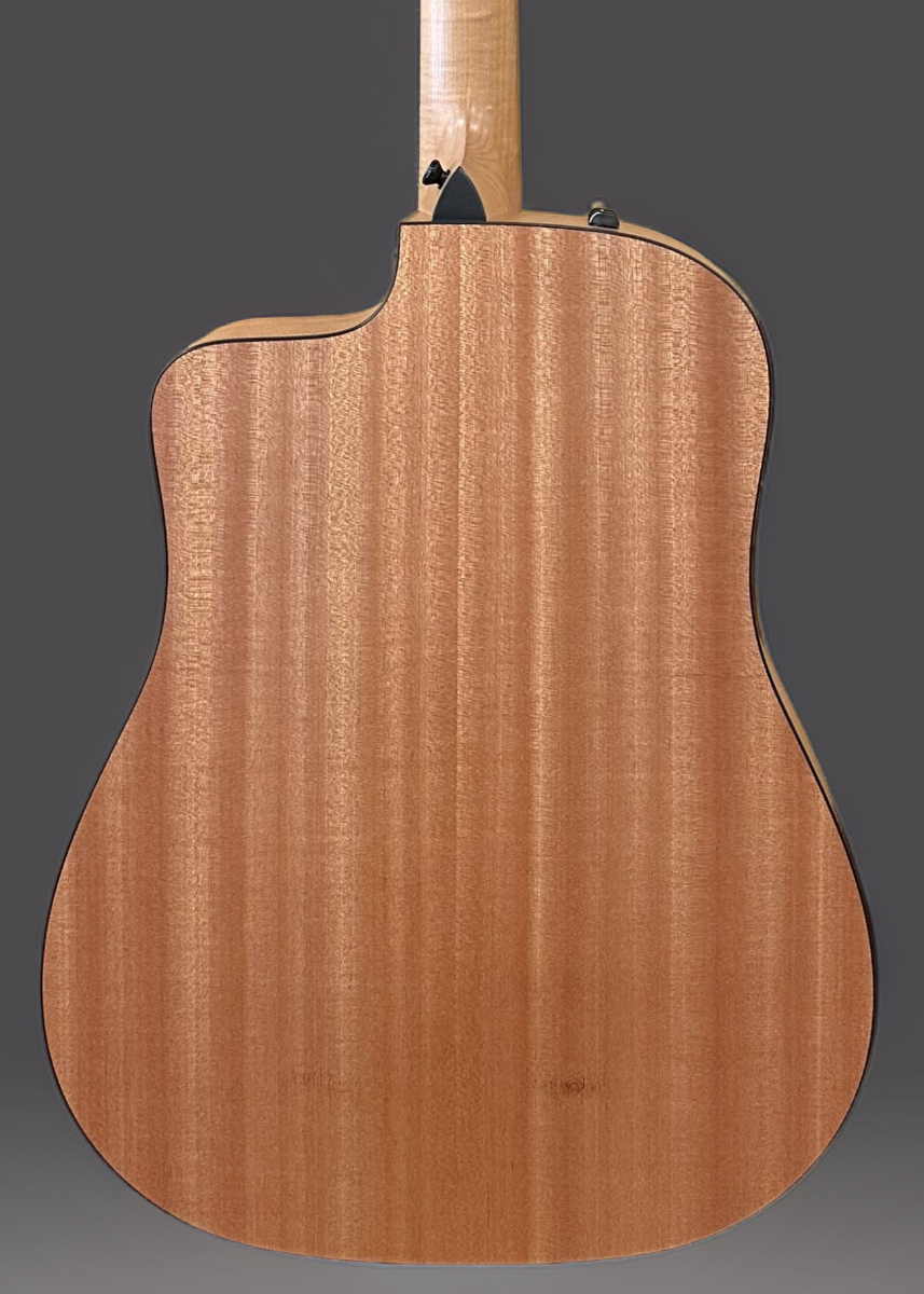 Natural, Matte finish, Dreadnought body shape with the Venetian cutaway, Sitka Spruce top, Three Ring Plastic Rosette, X bracing, Layered Sapele back and sides, Black binding, Ebony fingerboard with the Italian Acrylic 4mm Dot inlays on a Maple neck, 25.5” scale length, 1 11/16th” nut width, With the Expression 2 pickup system and gig bag
