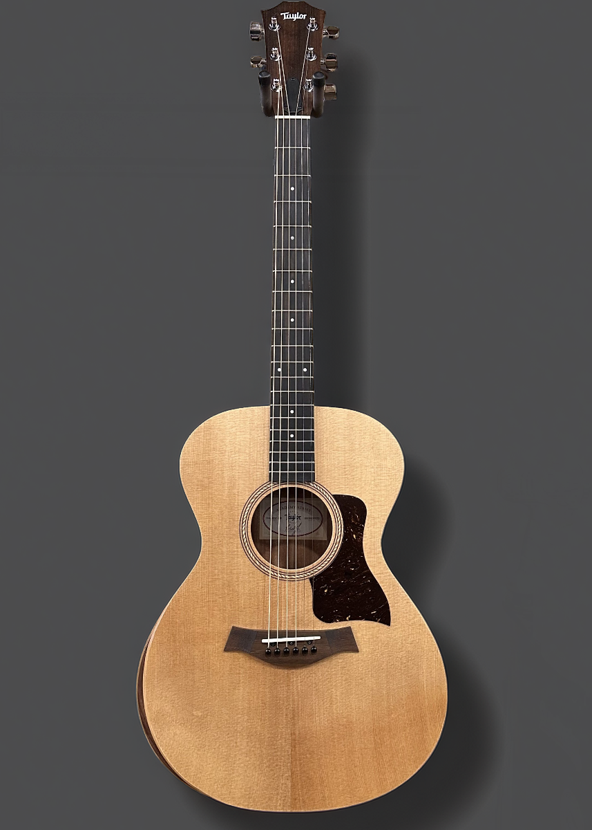 Natural, Matte finish, Grand Concert body shape with the armrest, Torrefied Spruce top, Three Ring Baltic Birch Rosette, Academy series X bracing, Layered Walnut back and sides, Eucalyptus fingerboard with the Italian Acrylic 4mm dot inlays on a Mahogany neck, 24 7/8th” scale length, 1 11/16th” nut width, Cast/sealed tuners, The neck thickness is .83″ at the first and .87″ at the 9th frets, With the ES-B pickup system and gig bag, Excellent