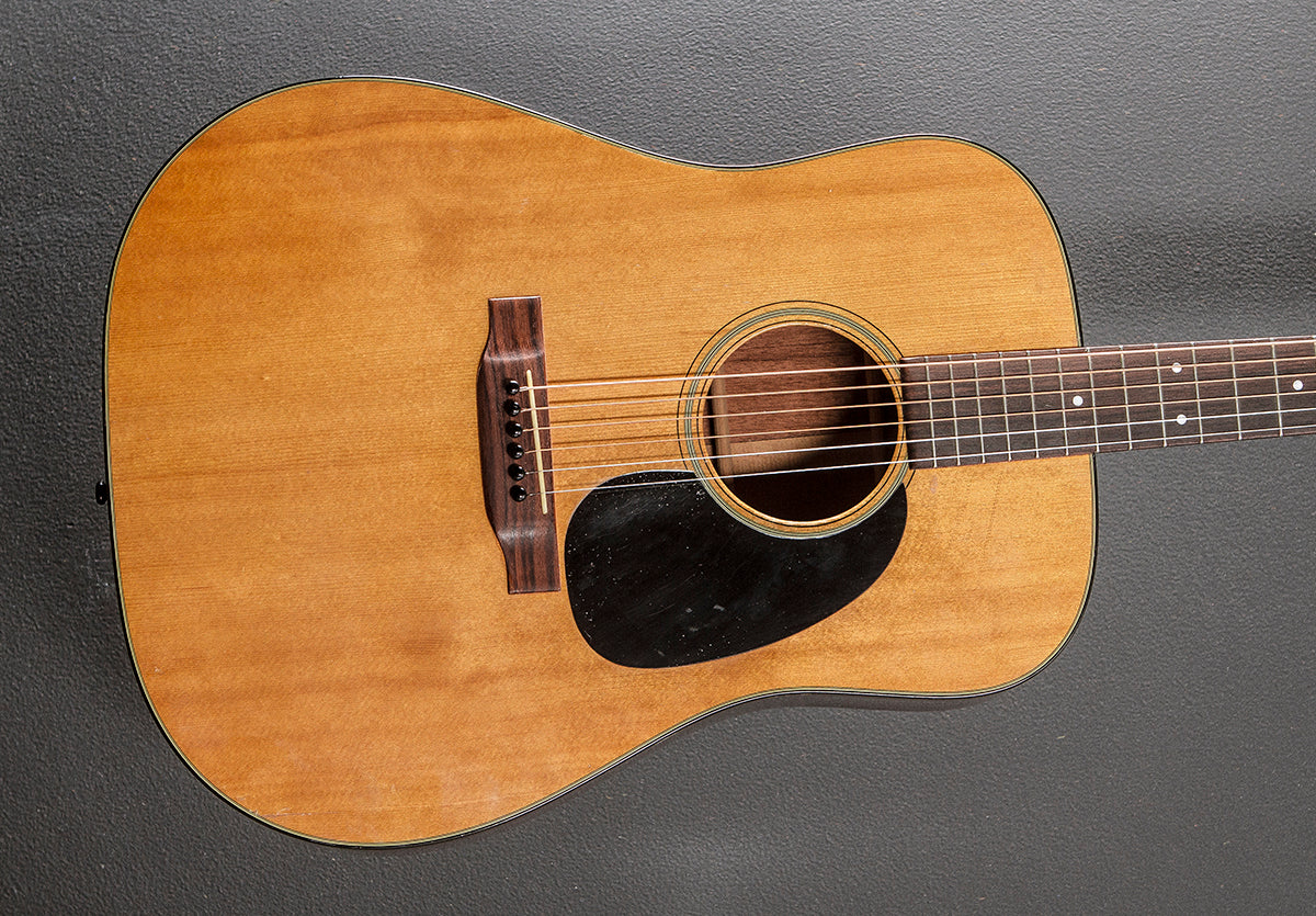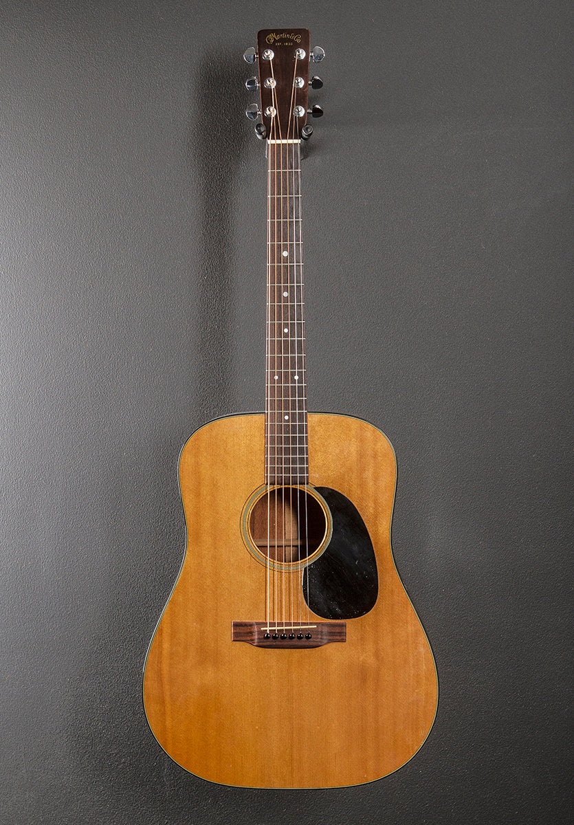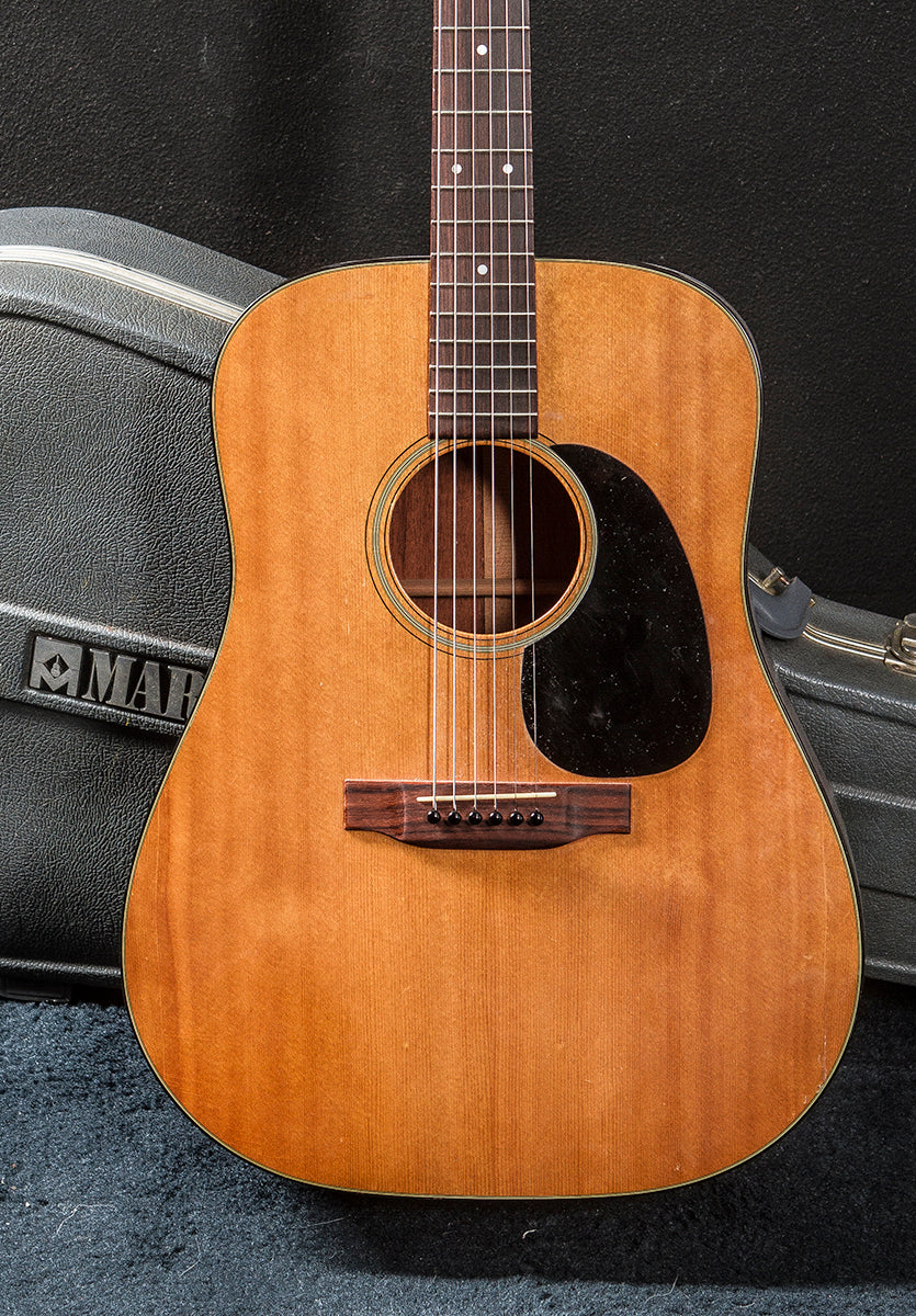 Natural, D-14 Fret body shape, Spruce top, Scalloped X bracing, Mahogany sides, Soft V shaped Mahogany neck with a 16" radius Rosewood fingerboard, Pro refret with narrow tall fret wire, 25.4" scale length, 1 11/16th" nut width, Grover tuners, The neck thickness is .85″ at the first and 1.00″ at the 9th frets, With the original Martin hardshell case, Very good