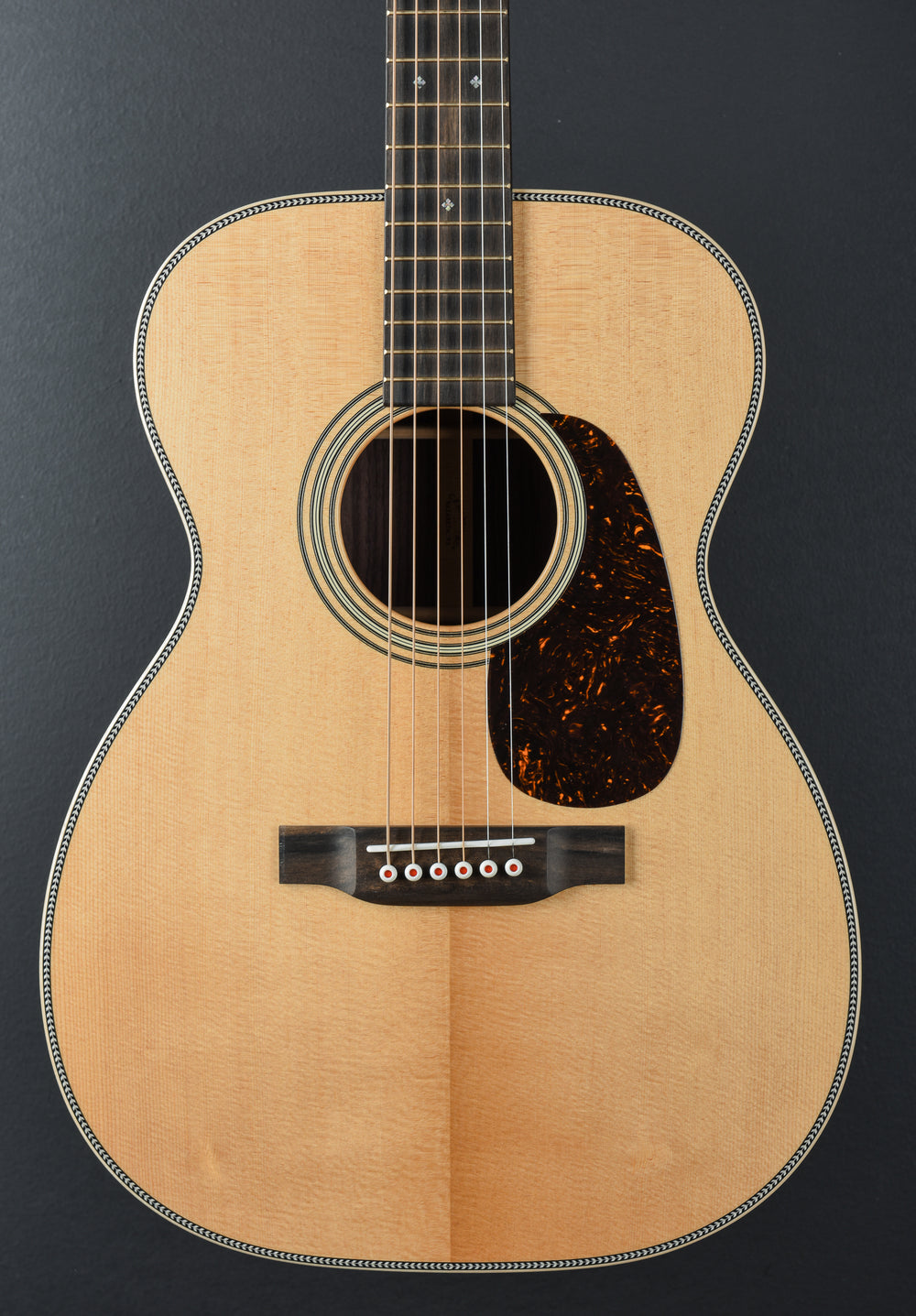 Natural, 00-14 Fret body shape, Solid Sitka Spruce top w/VTS, Adirondack Spruce scalloped X bracing w/VTS, Style 28 multi-stripe Rosette, European Flame Maple binding with the Bold Herringbone top and multi-stripe back inlay, East Indian Rosewood back and sides, Zig-Zag Authentic back purfling, Ebony fingerboard with the Abalone long pattern Diamond and Squares position markers on a vintage deluxe w/high performance taper shaped Mahogany neck, 24.9″ scale length, 1 3/4” nut width, With hardshell case