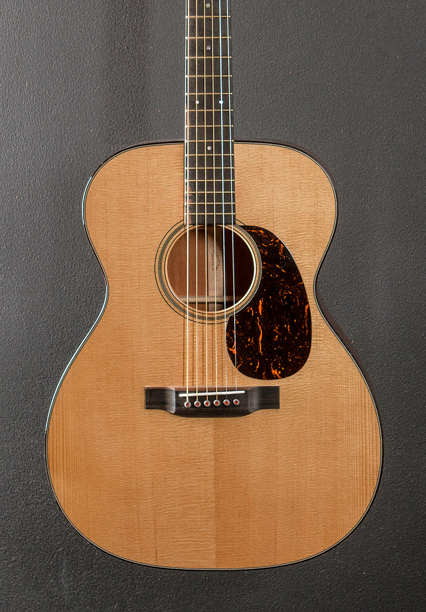 "The 000-18 Modern Deluxe is a new take on Martin Vintage. This guitar is packed with custom features and modern technology that you have to see, feel, and hear for yourself. The vintage appointments include a Sitka spruce VINTAGE TONE SYSTEM® (VTS) top, a dovetail neck joint, and natural protein glue construction, giving it the rich, fully aged Martin tone that has inspired generations. The look is unlike anything in our production line with East Indian rosewood binding, stylish gold frets, gold open-gear tuners, and a unique 1930s style script logo inlaid in pearl on the headstock. Some ultra-modern features include Liquidmetal® bridge pins with red dots and a composite carbon fiber bridgeplate that boosts volume, and a neck shape that is slightly asymmetrical for maximum hand comfort up and down the fretboard. This guitar is anything but standard."