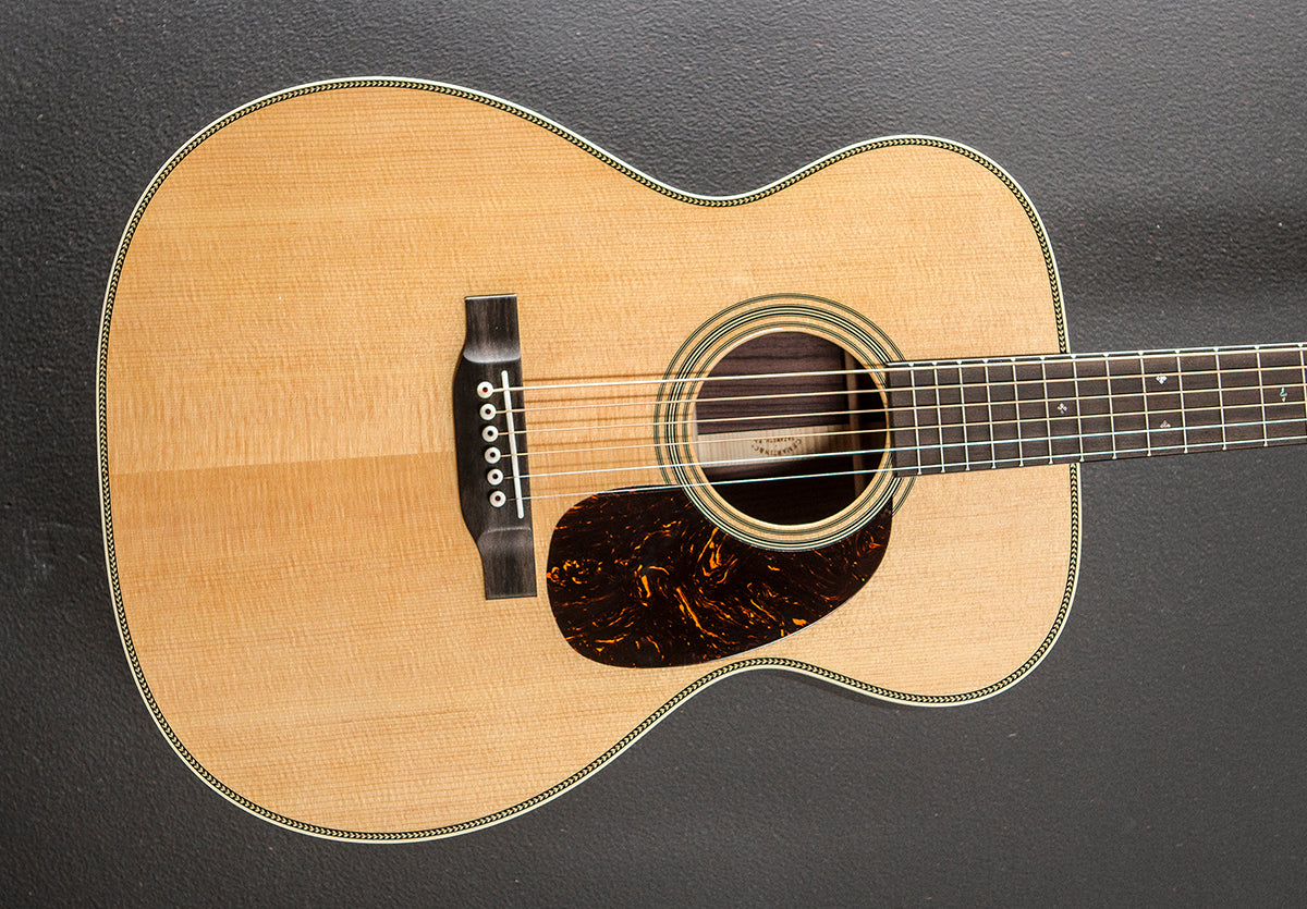 "The Martin 000-28 is one of the most iconic models in Martin’s lineup, trusted by generations of players for its versatility, tone, and timeless craftsmanship. Its Auditorium body size delivers a beautifully balanced voice across all six strings, making it equally suited for fingerstyle finesse or bold strumming. Handcrafted with a solid spruce top and solid East Indian rosewood back and sides, the 000-28 offers deep bass, rich overtones, and exceptional resonance, perfectly balanced for any playing style. The satin neck with a Golden Era (GE) Modified Low Oval profile, high-performance taper, and 24.9" scale length ensures unmatched comfort and effortless playability. Elegant details, like bold herringbone top inlay, antique white binding, an ebony bridge with bone pins, and an ebony fingerboard adorned with abalone diamond and square inlays, enhance its timeless design. Available in a variety of stunning gloss options, the 000-28 is a guitar you can trust to unleash the artist within.