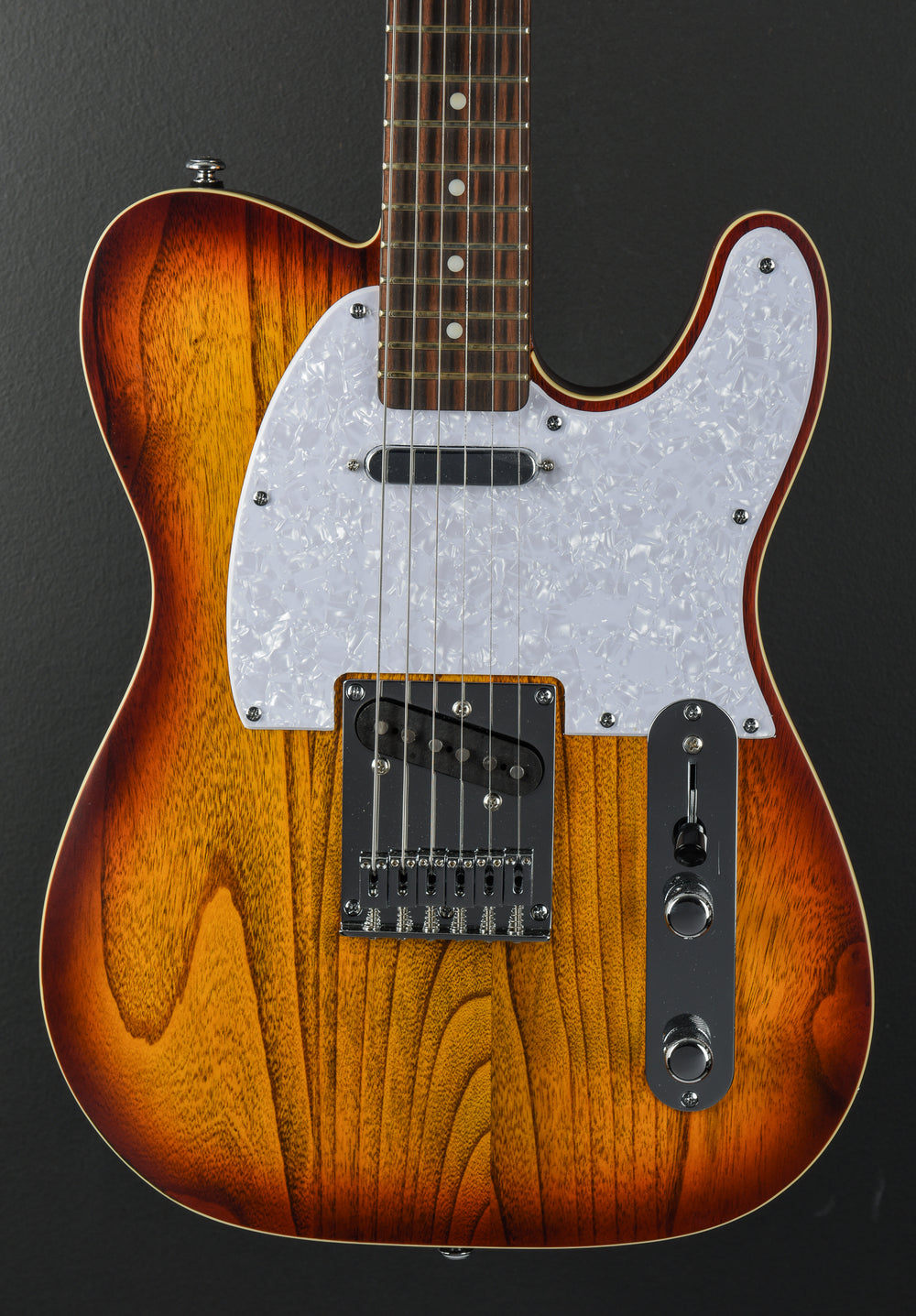 Tobacco Sunburst, Matte finish, Top bound Sungkai body with the arm and rear contours, C shaped Hard Maple neck, 10" radius Ebony fingerboard with the dot inlays and medium frets, 25.5" scale length, 1 11/16th" nut width, Rockfield TexPlus single coil alnico V bridge and neck pickups, 4-way Quad Mod switching with the master volume and tone controls, String thru body bridge with the block steel saddles, Cast/sealed tuners, 9lbs, Case not included