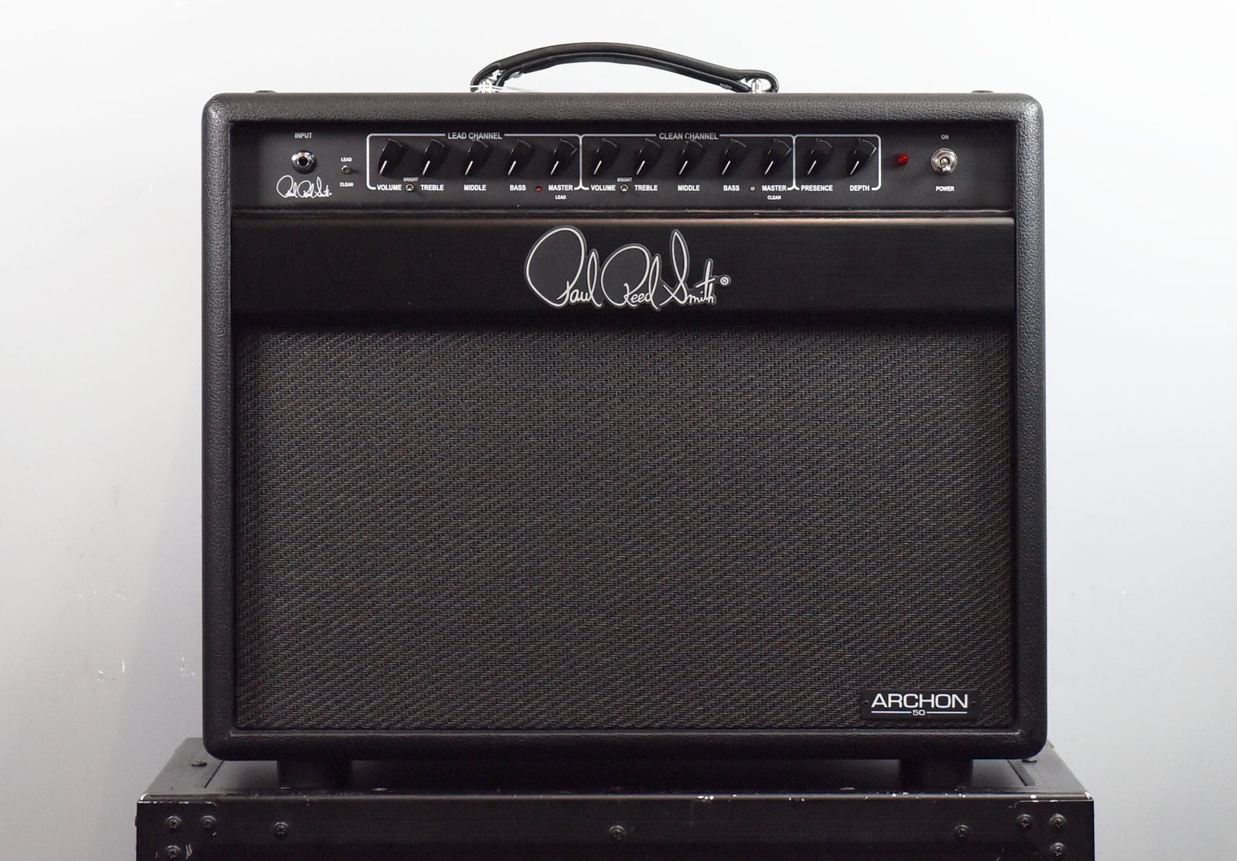 “Greek for “ruler” or “lord,” the PRS Archon is a commanding 2-channel amp with versatile overdriven tones and sparkling cleans with plenty of headroom. Designed with five gain stages before the master volume, the Archon’s lead channel is voiced to cover everything from Classic Rock to Metal with full, lush distortion. The clean channel provides rich tones that retain clarity even at high volume, and there is ample headroom, creating an excellent platform for pedals. The Archon has remarkably responsive tone with incredible note separation, whether you’re playing on the clean channel or chugging on the lead. The PRS Archon is powered by two 6CA7 power tubes, which fall between EL34 and 6L6 tubes, offering the best of both worlds. 6CA7’s are warm, full, and articulate with smooth high end and tight low end. They chug, distort, and get heavy without over-saturating, and they sing without becoming harsh. The 1x12 combo features a single Celestion V-type speaker, offering full, extended lows and sweet midrange. The compactness and portability of a “grab and go” combo design is also great for players who bring their amp along to rehearsals, studio time, and gigs. Utilizing a ‘no flash or trash’ approach, the Archon’s control layout allows for detailed and intuitive tone shaping. Each channel features volume, treble, middle, bass, and master volume controls as well as a bright switch. The 3-band EQ lets players better dial-in their desired tone, while the volume and master controls work together to command the amp’s distortion and loudness. The bright switch acts almost as a treble boost, putting a shine on the amp’s high-end without going into icepick territory. The global presence and depth controls in the Archon’s power amp section both work to modify the feedback network of the amp to unleash the potential of the high- and low-end respectively. Turning up the Presence control releases more high- mid and treble frequencies, bringing the amp’s tone forward. Depending on the tone stack and volume settings, the Presence can change the gain/ texture and loudness of the high-end, making your tone wilder and more 3-dimensional (or more “present” sounding). In addition to adding low-end, Depth adds a resonance to those frequencies that more 3-dimensionally shapes the Archon’s tone. Bottom Line: The Archon 50 delivers full, lush gain, a remarkable clean channel, and a versatile control layout that players of all genres will appreciate. Available as a 50-watt head or 1x12 combo.”