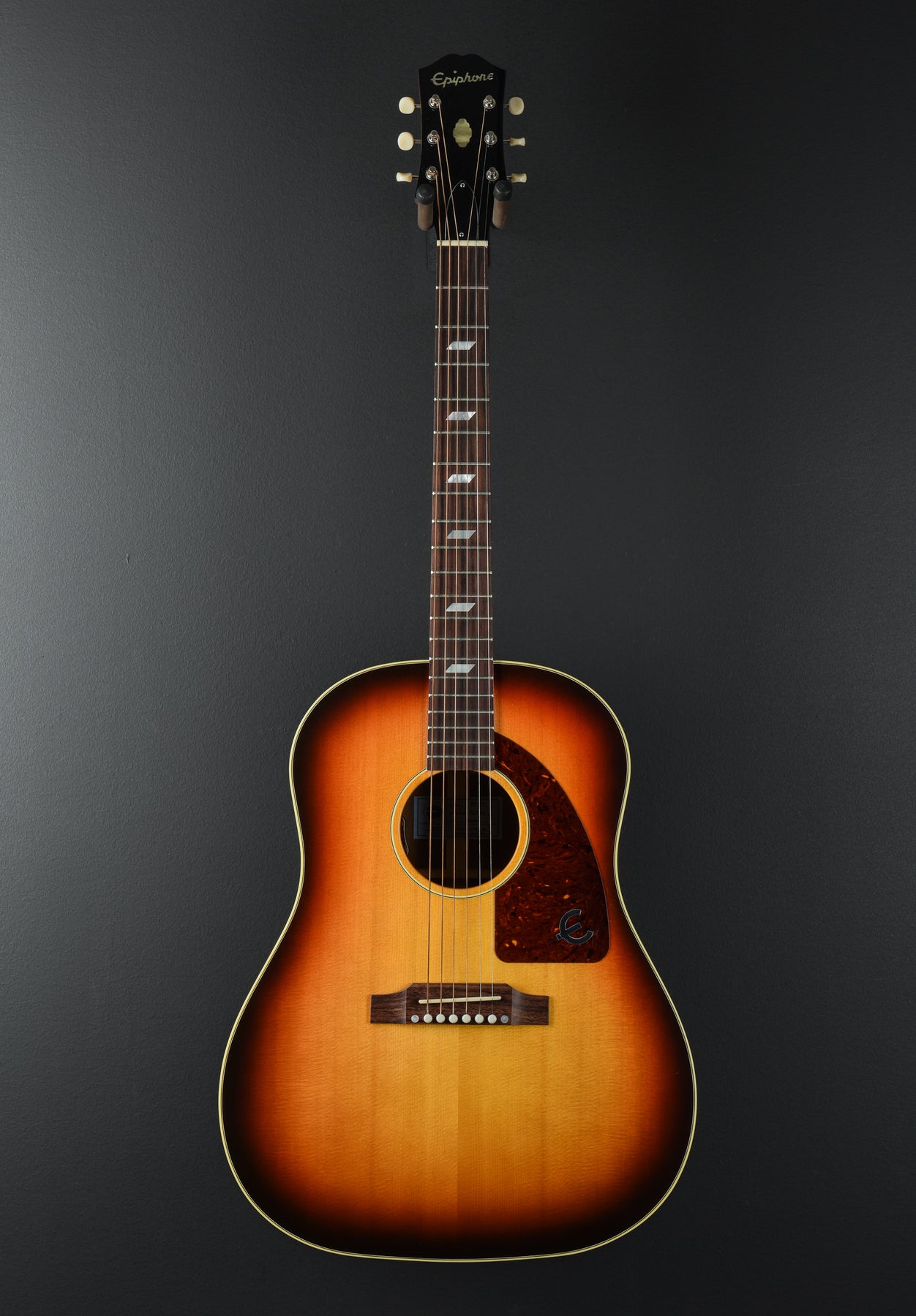 “Since 1958, the Epiphone Texan has been the inspiration for generations of world-class songwriters including Paul McCartney, Peter Frampton and Noel Gallagher of Oasis. Now, the Texan is made in the USA once again and is proudly handcrafted in Bozeman, Montana by Gibson’s finest acoustic luthiers. Featuring all solid woods, X-bracing, and a 25.5” scale length for a powerful tone. Featuring Gibson™ Strings.”