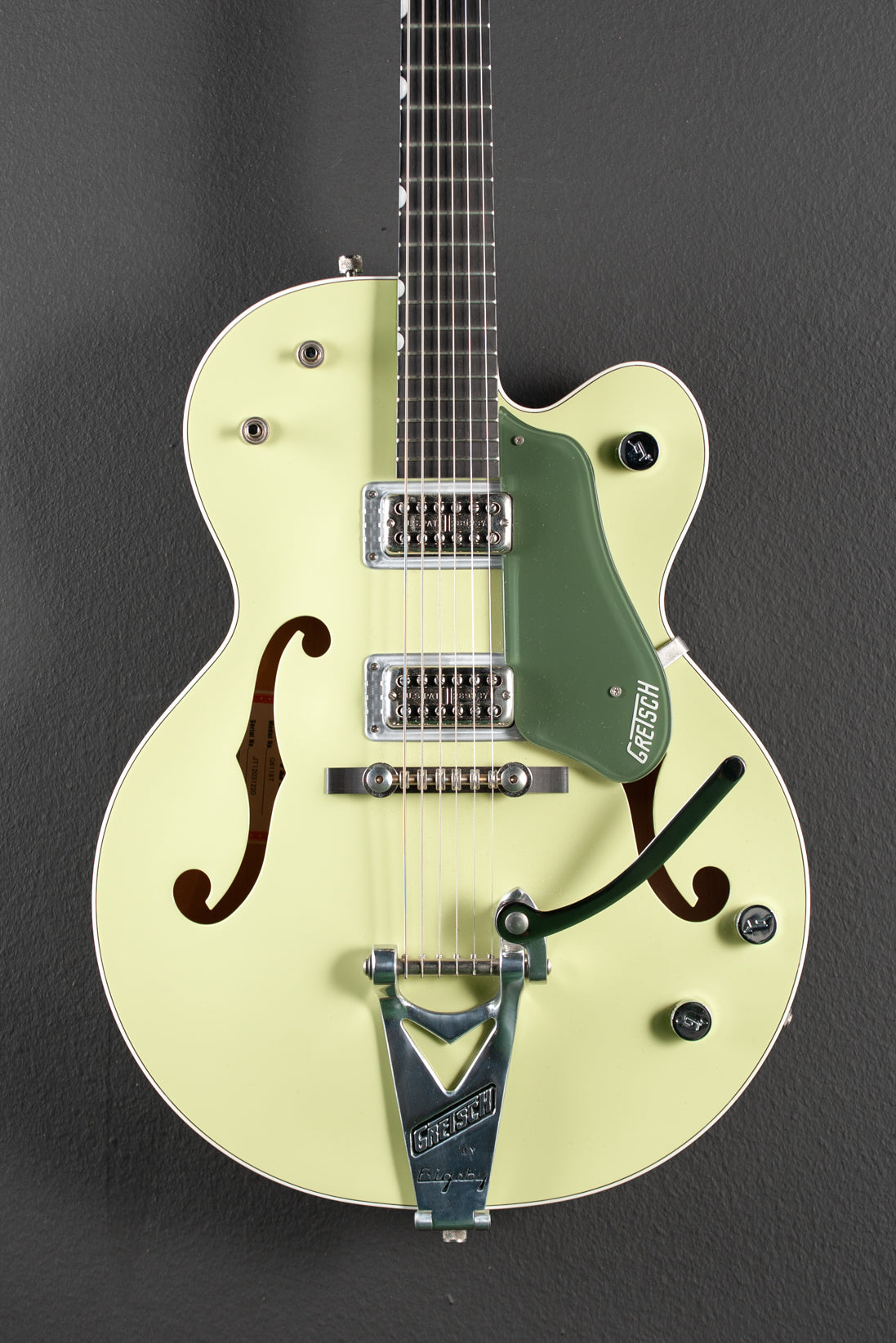 Two Tone Smoke Green, Hollow laminated Maple body with the trestle bracing, Vintage V shaped Maple neck with a 12" radius Ebony fingerboard and medium jumbo frets, 24.6" scale length, 1 11/16th" nut width, High Sensitive Filter'Tron bridge and neck pickups, 3-way toggle switching with a volume control for each pickup plus a master volume and a 3-way tone selector switch, Tune-o-matic bridge with the Rosewood base and a Bigsby vibrato, Grover Sta-Tite tuners, .83-.95 Neck Dimension, 7.5lbs, With hardshell case, Very good -ON HOLD TOW 01/09 TF