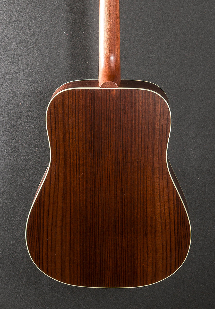 Satin Rosewood Burst, Square Shoulder Hummingbird body shape, Satin nitrocellulose lacquer finish, Sitka Spruce top, Traditional hand scalloped X bracing, Multi-ply top and single-ply back binding, Rosewood back and sides, Advanced response shaped Utile neck, 16” radius Rosewood fingerboard with the Mother of Pearl Parallelogram inlays and standard frets, 24.75″ scale length, 1.72″ nut width, Grover Rotomatic tuners, With the L.R. Baggs Element pickup system and hardshell case