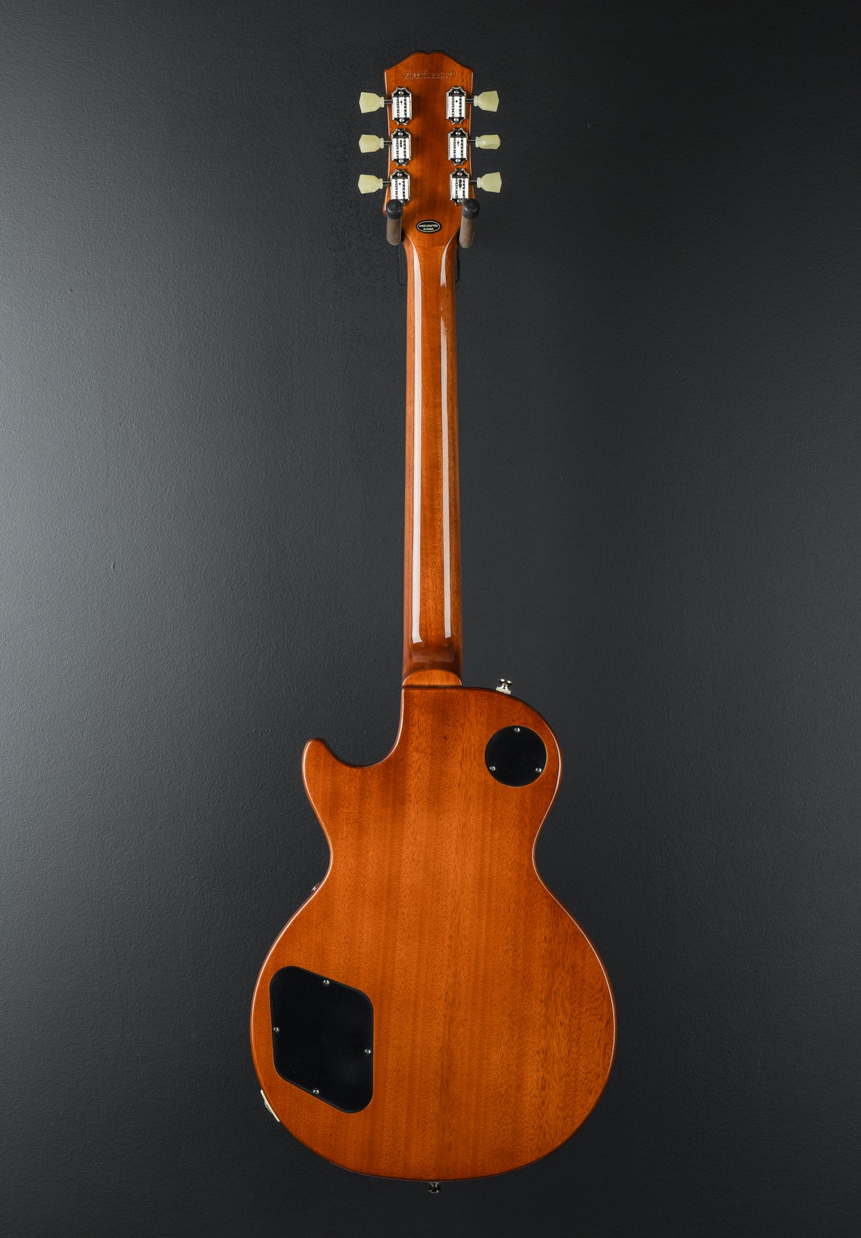 “Epiphone’s Inspired by Gibson™ Collection proudly presents the Les Paul™ Standard 50s! This guitar lovingly recreates the feel and tone of the 1950s-era Les Pauls. Epiphone’s long friendship with Mr. Les Paul began in 1940 when Les built one of the world’s first solidbody electric guitars while working nights at the original Epiphone factory in Manhattan. Les’ first solidbody guitar, nicknamed “the Log,” would go on to inspire the Les Paul Standard, which many consider the greatest electric guitar ever made. This guitar is crafted with a mahogany body with a maple cap, a bound ’59 Rounded Medium C-shaped mahogany neck with long neck tenon, laurel fretboard with classic trapezoid inlays and 22 medium jumbo frets, Epiphone’s Vintage Deluxe tuners, a pair of critically acclaimed Epiphone Probucker™ humbuckers™, and gold Top Hat knobs with dial pointers. This Epiphone Inspired by Gibson Original model also has the Kalamazoo headstock, Graph Tech® nut, era-appropriate wiring, and CTS® pots. A premium gig bag is also included."