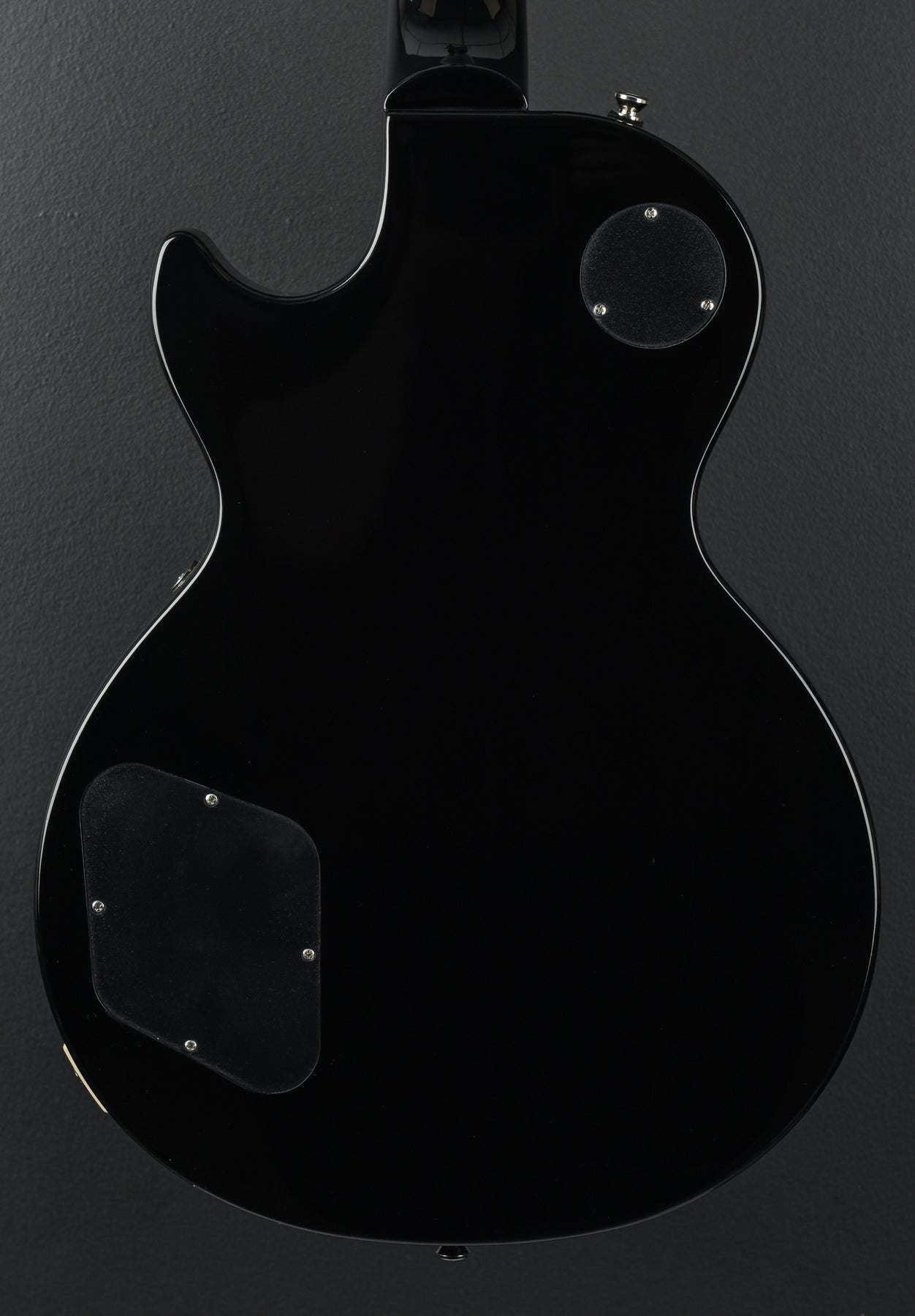 Ebony, AA Flame Maple Top, Mahogany Body, Slim Taper 60's C Shaped Mahogany Neck, Bound 12" Radius Indian Laurel Fingerboard with Pearloid Trapezoid Inlays and Medium Jumbo Frets, 24.75" Scale Length, 1.69" Nut Width, Epiphone ProBucker 3 Bridge and ProBucker 2 Neck Pickups, 3-Way Toggle Switching and Volume and Tone Controls for Each Pickup, CTS Pots, Epiphone LockTone Tune-O-Matic Bridge and Stop Tailpiece, Grover Rotomatic Tuners, 9.1 Pounds, No Case or Gig Bag Included.
