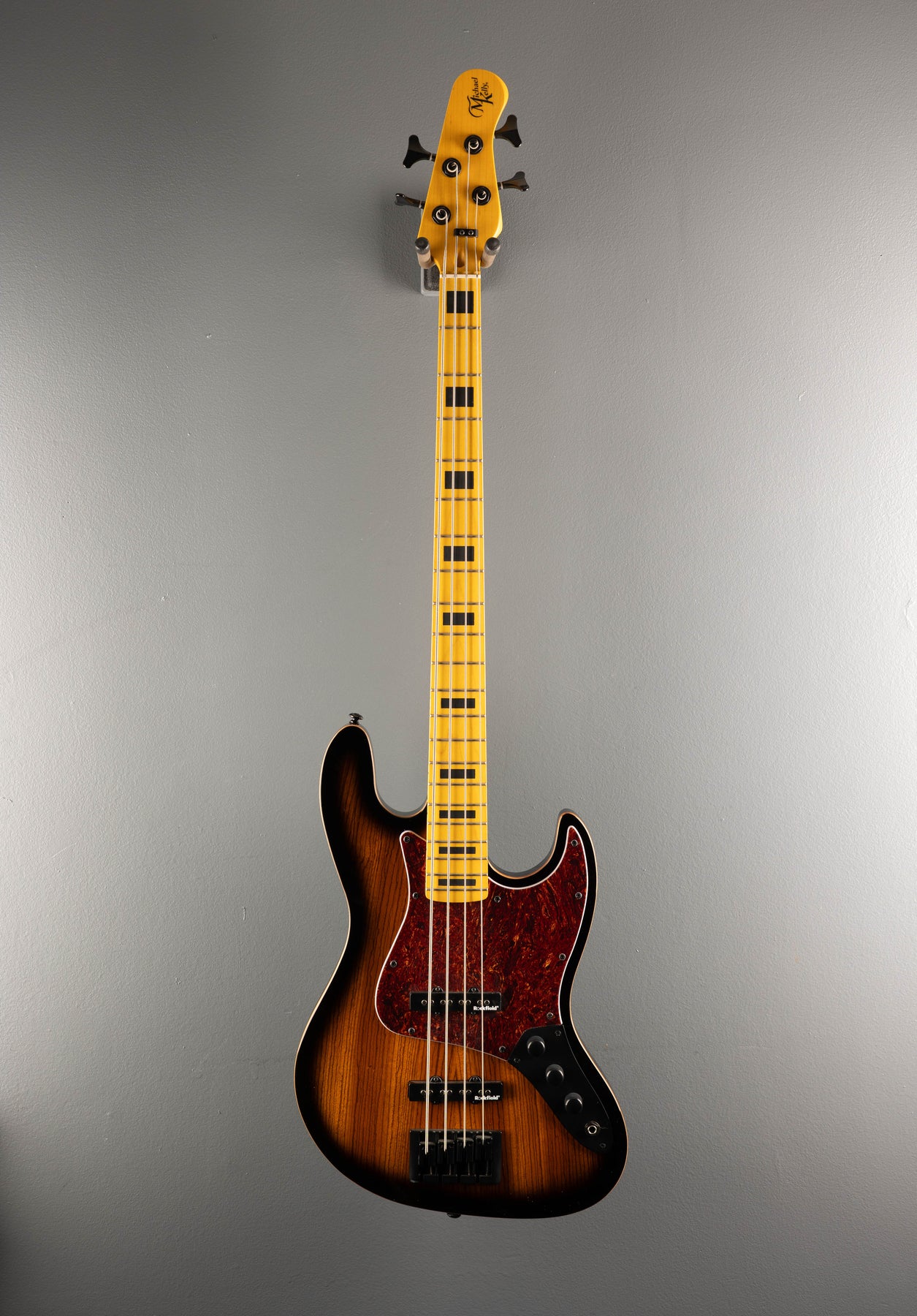 "The Vintage Element 4 gives you the classic look that modern players are craving, but has all the enhanced comfort and playability you have come to expect from Michael Kelly. The Alder body is topped with tough, durable and visually striking Zebra wood, finished in a classic burst. Built into the body are arm and belly cuts that make this one of the most comfortable bass guitars for those long gigs. The Rock Maple neck and fretboard features black block inlays. Traditional passive volume, tone and blend controls along with our specially designed Rockfield pickups, give you a versatile workhorse that will quickly become your go to bass guitar.