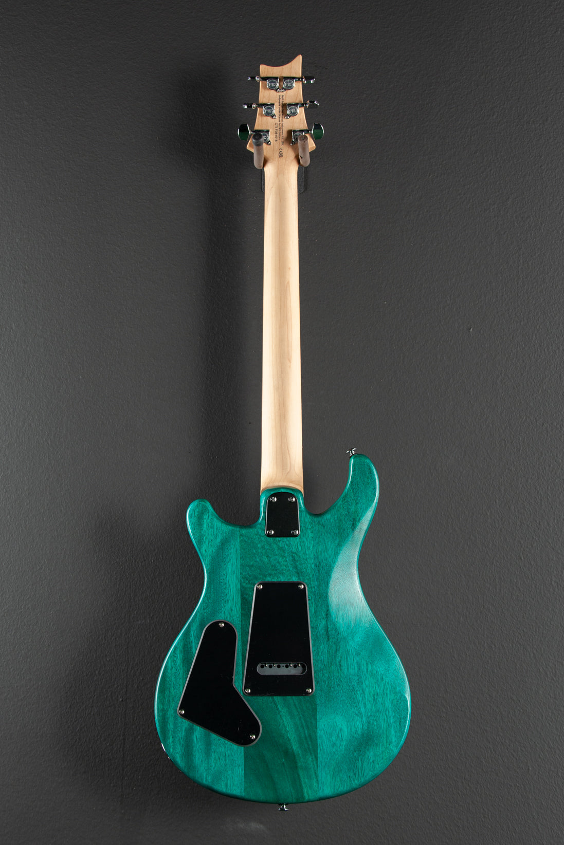 Turquoise, Mahogany body with a shallow violin carved top, Wide/Thin carved Maple neck, 10″ radius Rosewood fingerboard with Bird inlays, 25″ scale length, 1 11/16th″ nut width, PRS 85/15 “S” bridge and neck pickups, 3-way toggle switching with volume and push/pull coil tap tone controls, PRS patented molded tremolo and PRS designed tuners, 8 pounds, With gig bag, Condition- Very Good