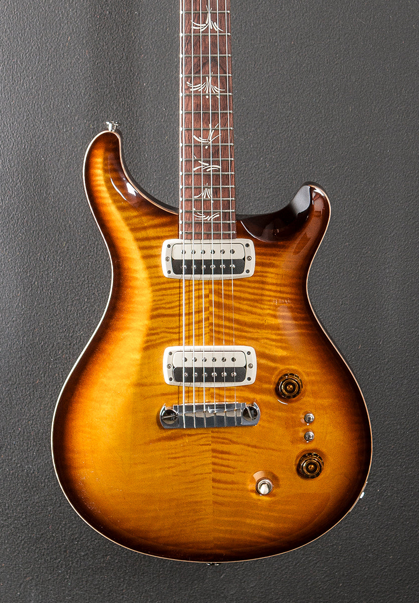 McCarty Tobacco Sunburst, High gloss nitro finish, Violin carved figured Maple top, Mahogany body, Pattern carved Mahogany neck, 10" radius Honduran Rosewood fingerboard with the Brushstroke Bird inlays, 25" scale length, 1 11/16th" nut width, TCI bridge and neck pickups, 3-way toggle switching with the volume and tone controls plus the two mini-toggle coil tap switches, PRS stoptail bridge with the brass inserts, PRS Phase III locking tuners, 7.8 pounds, With hardshell case