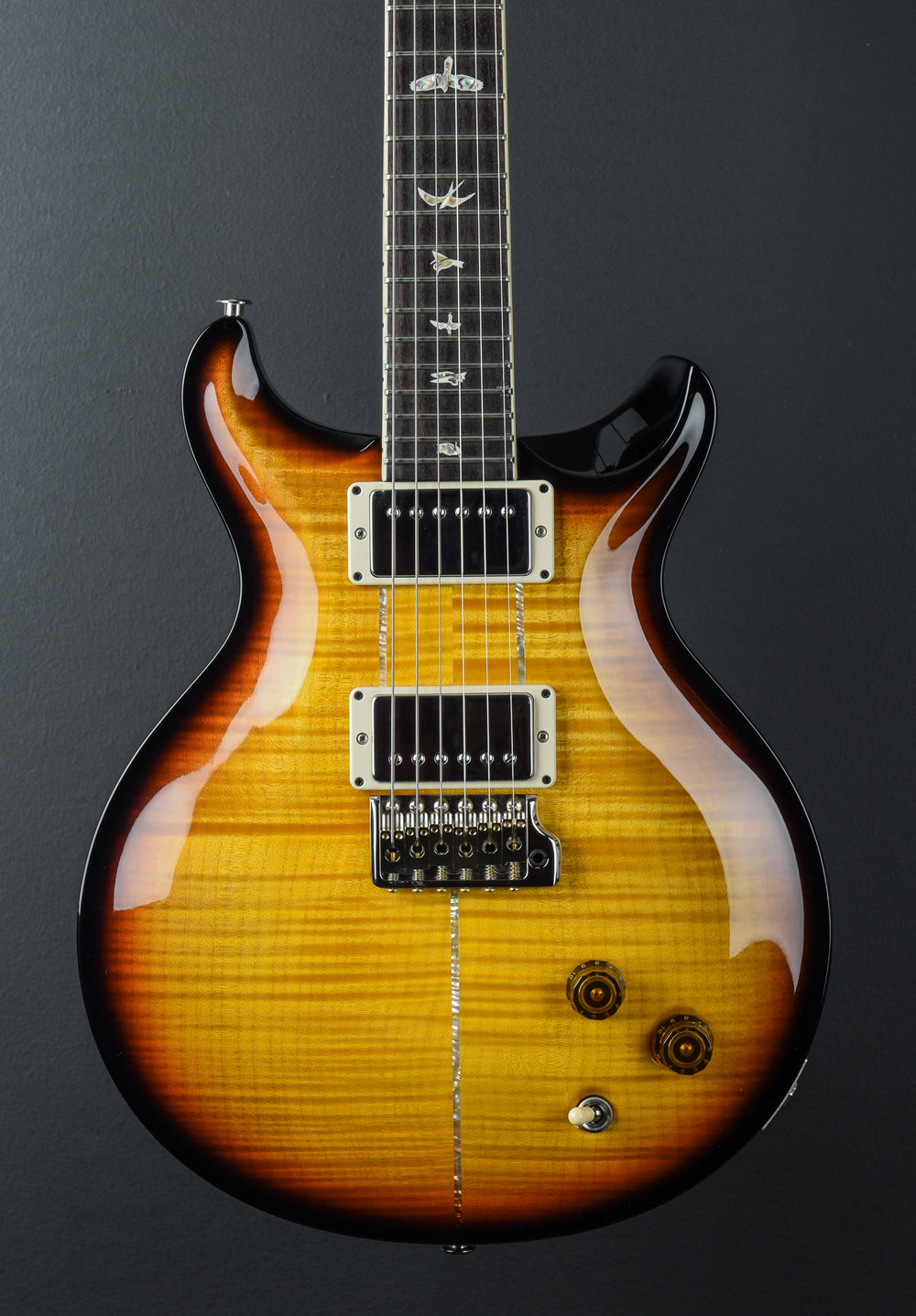 Vintage Smokeburst, Violin carved figured Maple top, Mahogany body, Pattern Mahogany neck, Bound 10″ radius Rosewood fingerboard with the Bird inlays, 24.5″ scale length, 1 11/16th” nut width, Santana bridge and neck pickups, 3-way toggle switching with the volume and tone controls, PRS patented Gen III tremolo and PRS Phase III locking tuners, 7.8 pounds, With hardshell case