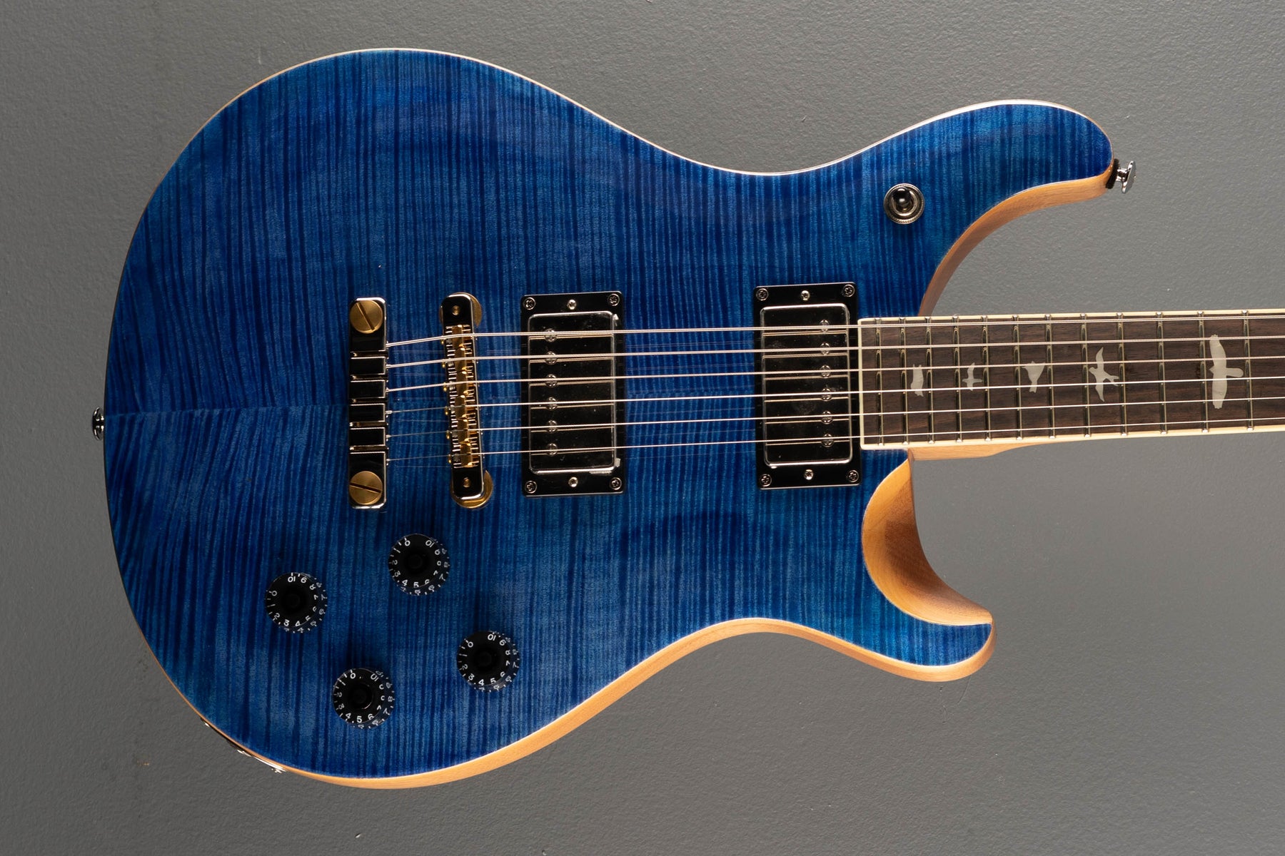 Excellent Condition, Faded Blue, Shallow violin carved Maple top with a Flame Maple veneer, Pattern Vintage carved Mahogany neck, Bound 10" radius Rosewood fingerboard with the Bird inlays, 24.594” scale length, 1 11/16th" nut width, 58/15 LT "S" bridge and neck pickups, 3-way toggle switching with the volume and push/pull coil tap tone controls for each pickup, PRS two-piece bridge and vintage style tuners, 7.0 pounds With gig bag