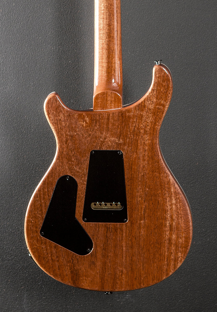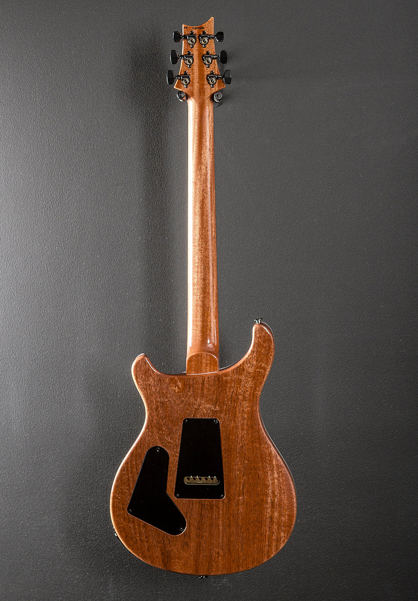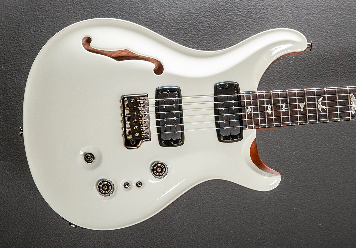 Antique White top w/Natural body and neck, High gloss nitro finish, Violin carved figured Maple top with the single F hole, Semi-hollow Mahogany body, Pattern Thin carved Mahogany neck, 10″ radius Rosewood fingerboard with the Bird inlays, 25″ scale length, 1 11/16th” nut width, PRS TCI bridge and neck pickups, 3-way toggle switching with the volume and tone controls plus the two mini-toggle EQ switches, PRS Gen III tremolo, PRS Phase III locking tuners with the wing buttons, 6.4 pounds, With hardshell case