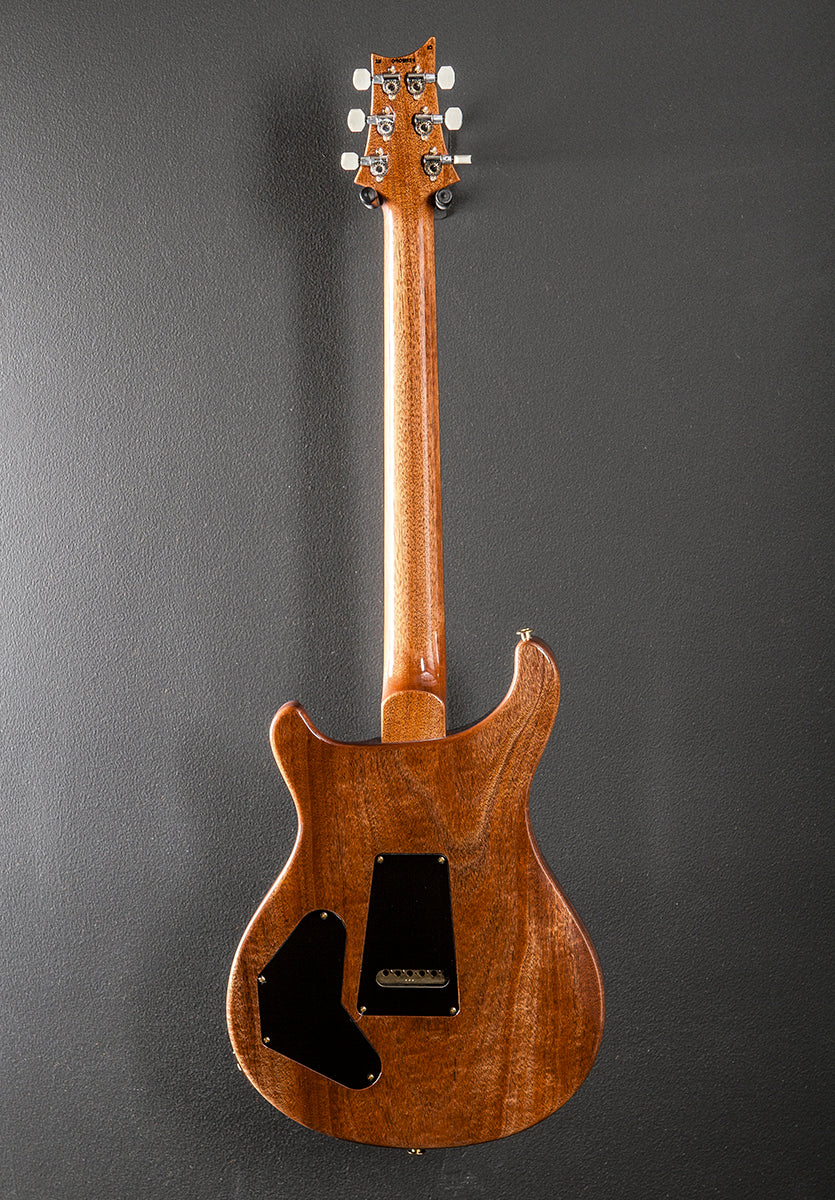 Faded Blue Jean Burst, High gloss nitro finish, Violin carved Flame Maple 10 top, Mahogany body, DGT carved Mahogany neck, 10" radius Rosewood fingerboard with the Bird inlays, 25" scale length, 1 11/16th" nut width, PRS DGT bridge and neck pickups, 3-way toggle switching with the volume/volume and push/pull coil tap tone controls, PRS patented Gen III tremolo, PRS Phase III locking tuners with the faux Bone buttons, 7.8 pounds, With hardshell case