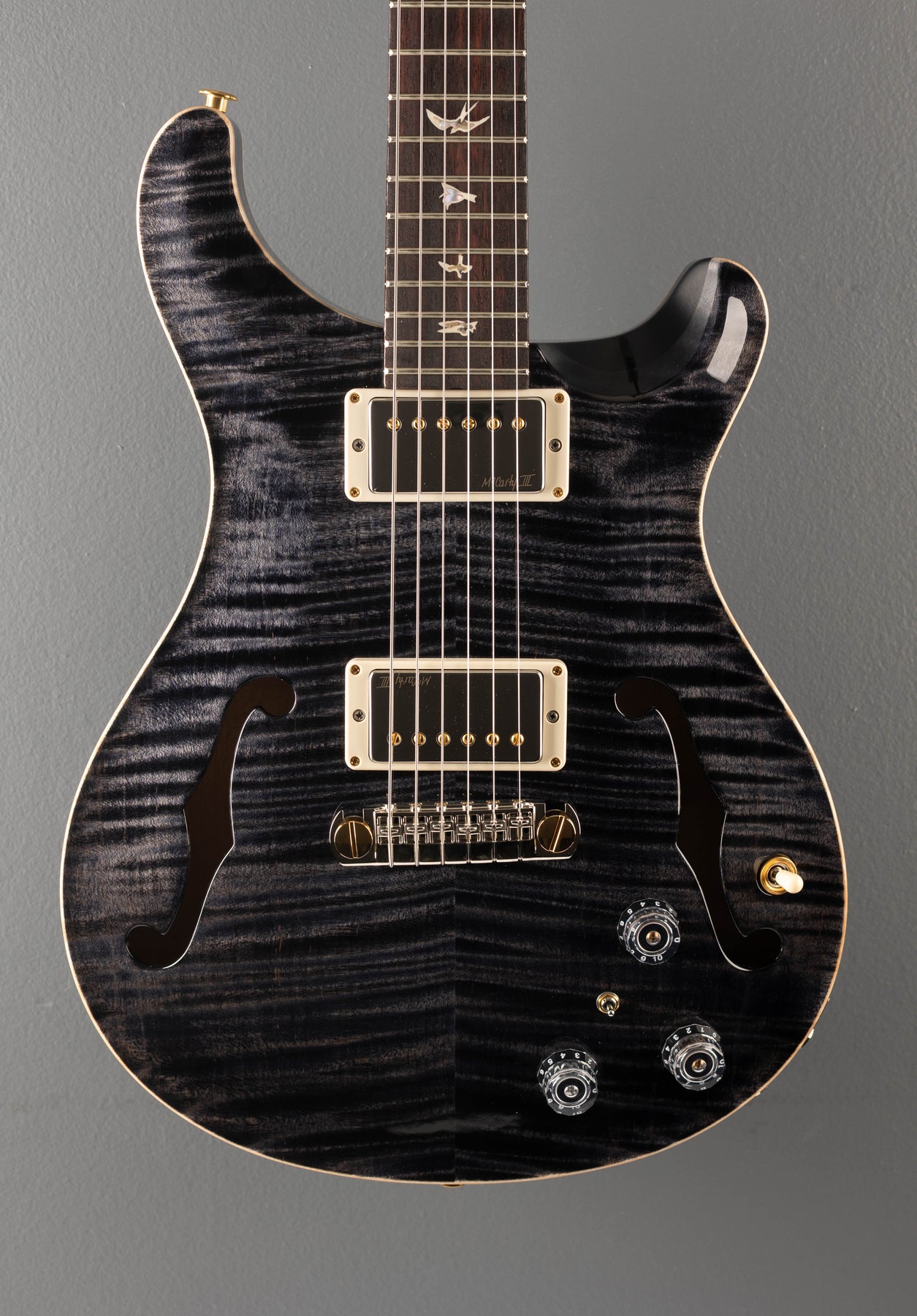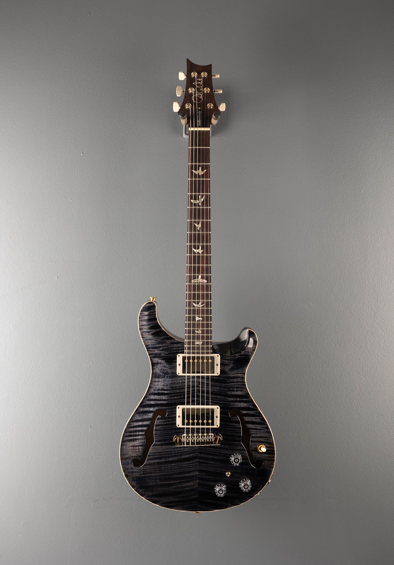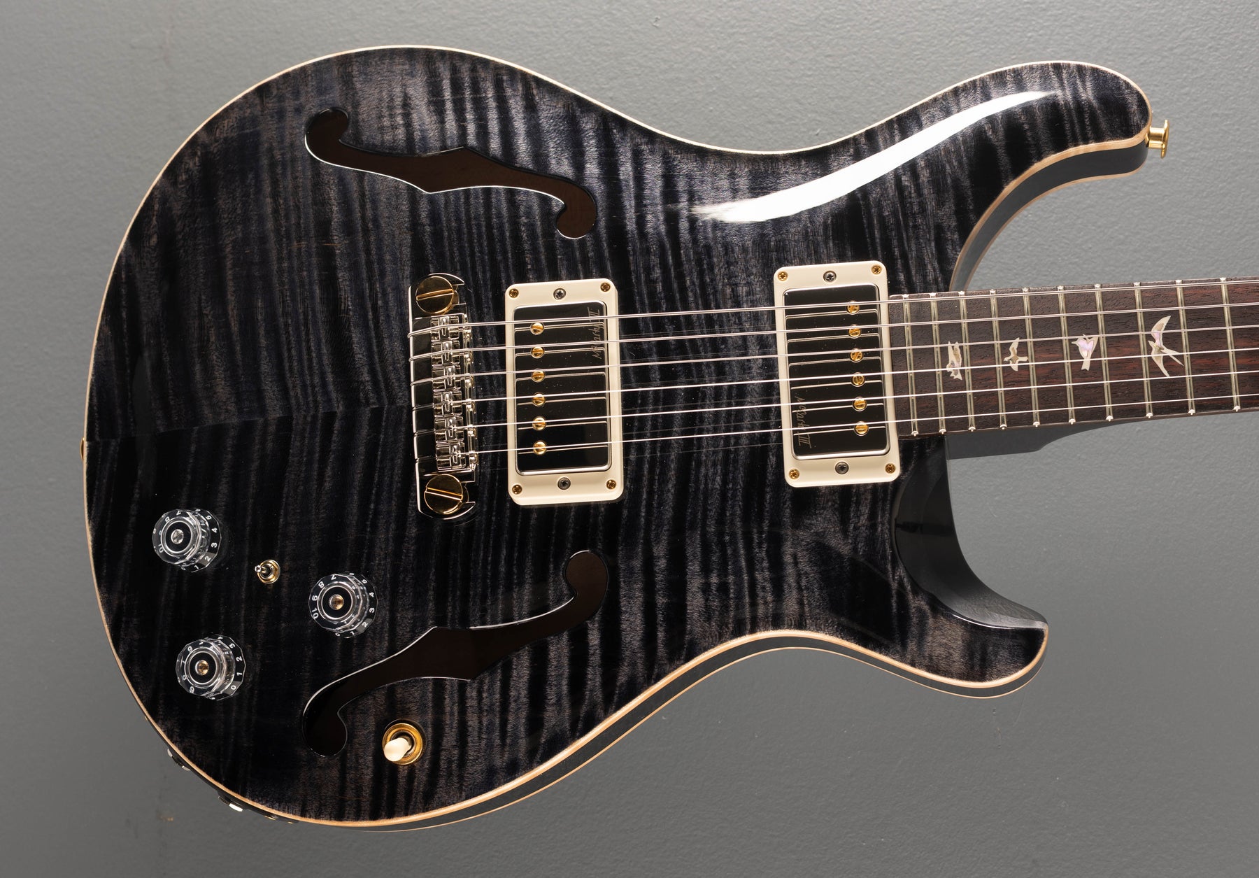 Gray Black, High gloss nitro finish, Violin carved Flame Maple 10 top and back, Mahogany body core, Pattern carved Mahogany neck, 10" radius Rosewood fingerboard with the Bird inlays, 25" scale length, 1 11/16th" nut width, PRS 58/15 LT bridge and neck pickups with the L.R. Baggs/PRS adjustable piezo stoptail bridge, 3-way toggle switching with the volume and tone controls plus the piezo pickup system 3-way selector and blend knob, PRS Phase III non-locking tuners with the wing buttons, 5.7 pounds, With hardshell case