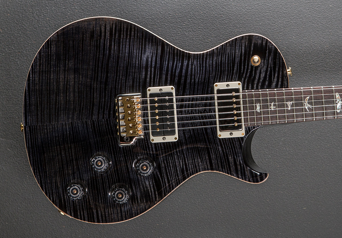 Gray Black, High gloss nitro finish, Violin carved Flame Maple 10 top, Mahogany body, Pattern Thin carved Mahogany neck, 10" radius Rosewood fingerboard with the Bird inlays, 25″ scale length, 1 11/16th″ nut width, Tremonti bridge and neck pickups, 3-way toggle switching with the volume and tone controls for each pickup, PRS Gen III tremolo with the trem-up route, PRS Phase III locking tuners, 8.6 pounds, With hardshell case
