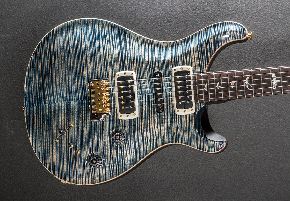 Faded Whale Blue, High gloss nitro finish, Violin carved Flame Maple 10 top, Mahogany body, Pattern carved Mahogany neck, 10" radius Rosewood fingerboard with the Bird inlays, 25″ scale length, 1 11/16th" nut, PRS TCI bridge and neck pickups plus the NS-01 middle pickup, 5-way blade switching with the volume and push/pull tone controls plus the two mini-toggle EQ switches, PRS Gen III tremolo, PRS Phase III locking tuners with the wing buttons, 7.6 pounds, With hardshell case