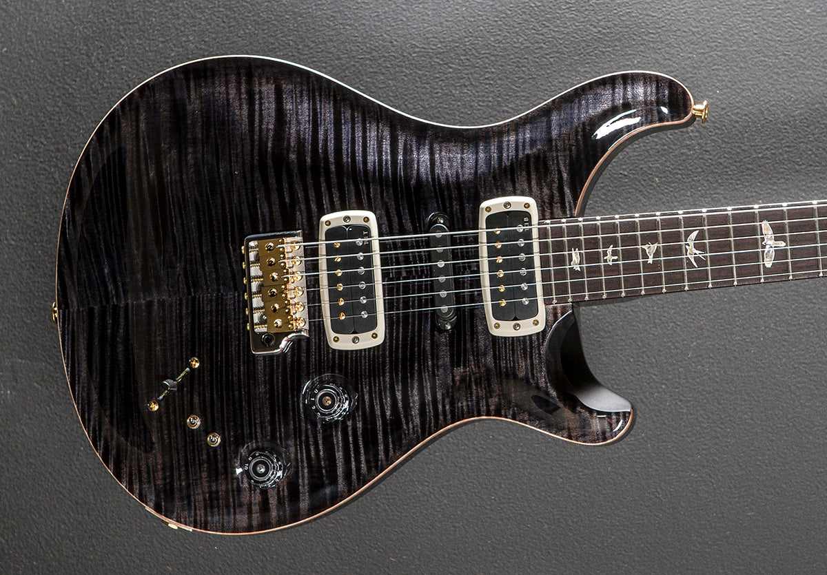 Gray Black, High gloss nitro finish, Violin carved Flame Maple 10 top, Mahogany body, Pattern carved Mahogany neck, 10" radius Rosewood fingerboard with the Bird inlays, 25″ scale length, 1 11/16th" nut, PRS TCI bridge and neck pickups plus the NS-01 middle pickup, 5-way blade switching with the volume and push/pull tone controls plus the two mini-toggle EQ switches, PRS Gen III tremolo, PRS Phase III locking tuners with the wing buttons, 8.0 pounds, With hardshell case