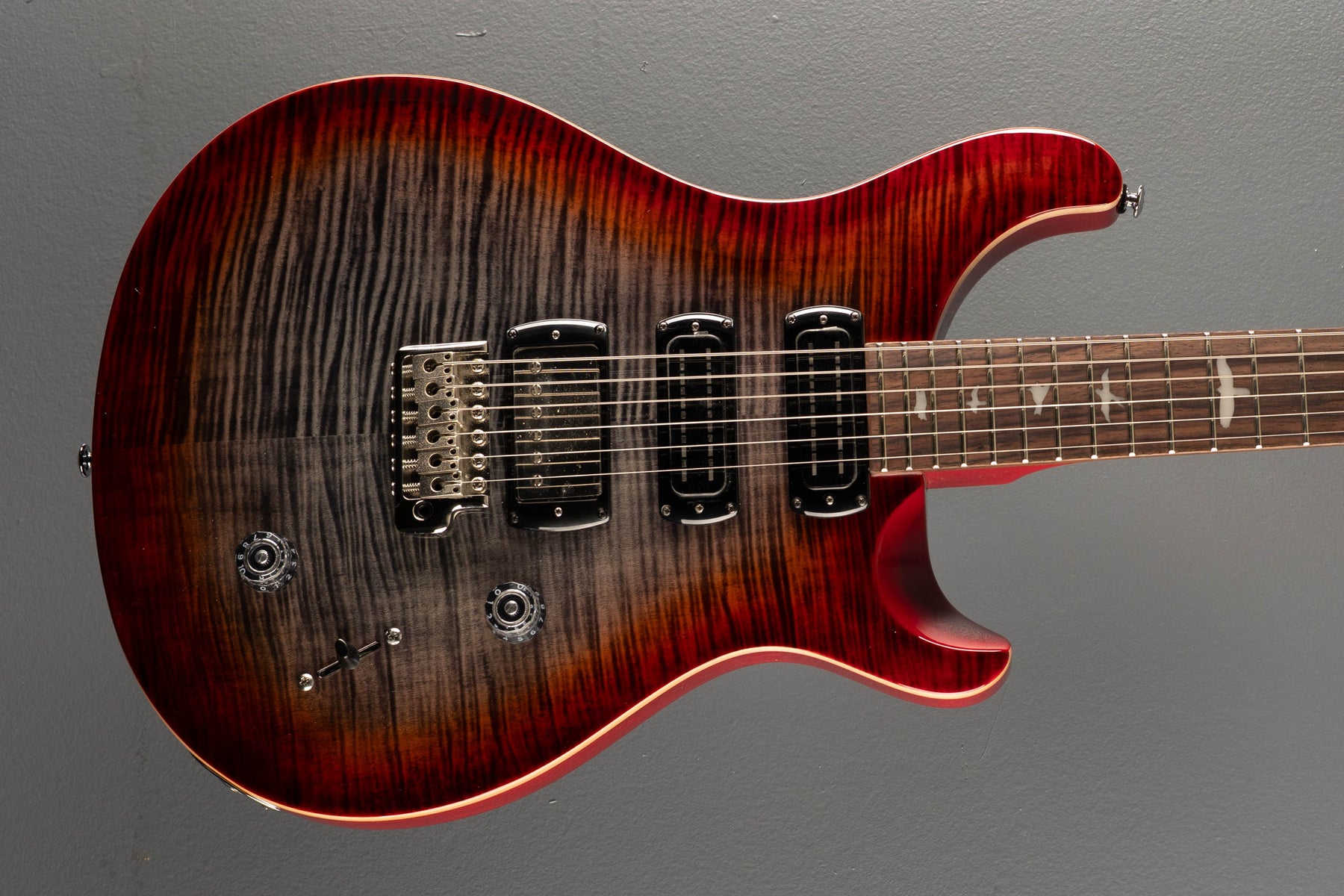 Excellent Condition, Charcoal Cherry Burst, Mahogany body, Shallow Violin Carved Maple cap with a Figured Maple veneer, 10" radius Rosewood fingerboard with bird inlays on a Wide Thin carved Maple neck, 1 11/16" nut width, 25" scale length, 58/15 “S” bridge and Narrowfield DD “S” Neck/Middle pickups, 5 way switching with volume and push pull coil tap tone controls, PRS Patented Tremolo and PRS Designed Tuners, 8.0 pounds, comes with gig bag.