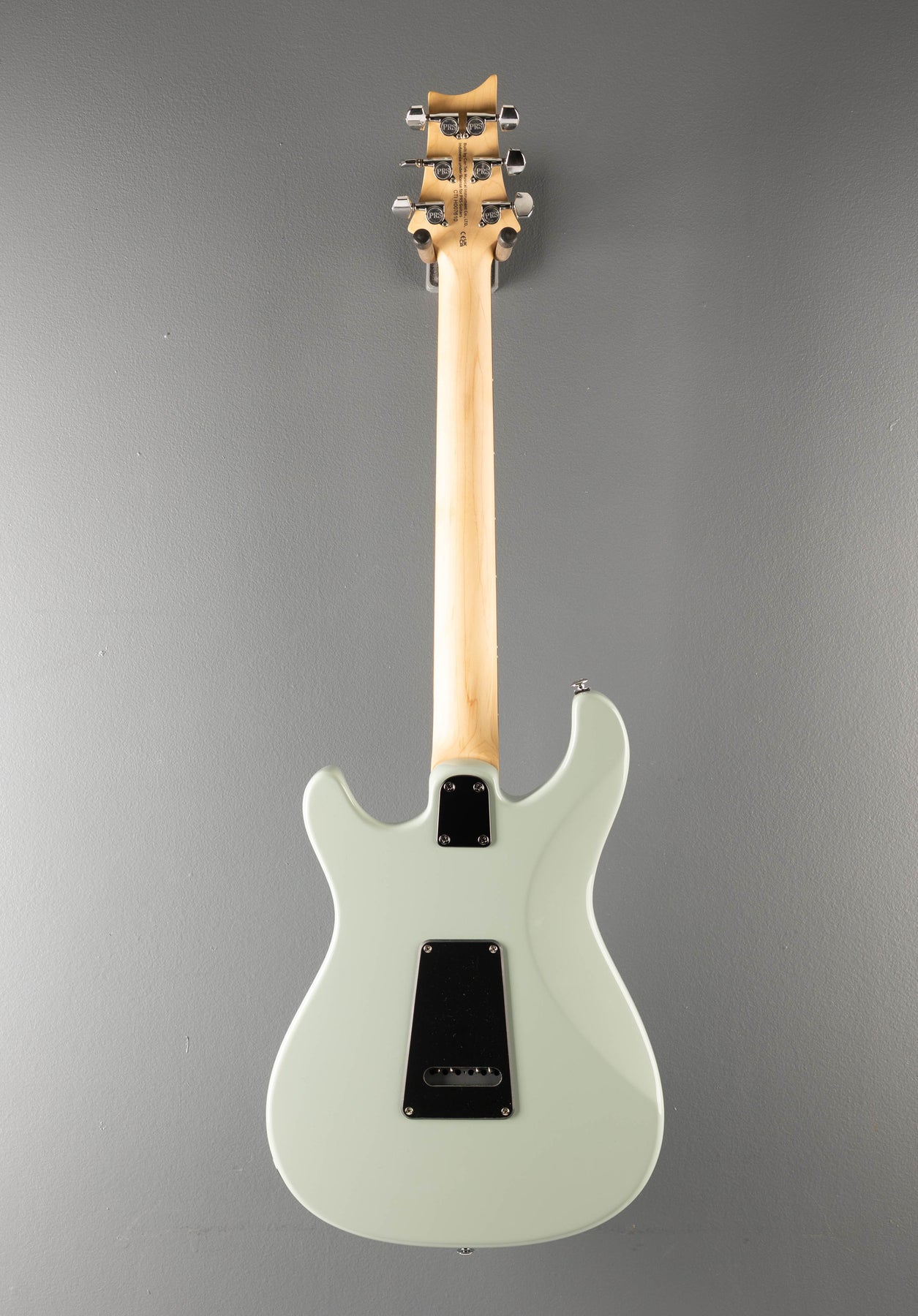 Excellent Condition, Silvertone Gray, Flat Top Mahogany body, 10" radius Rosewood fingerboard with bird inlays on a Wide Thin carved Maple neck, 1 11/16" nut width, 25" scale length, 58/15 “S” bridge and Narrowfield DD “S” Neck/Middle pickups, 5 way switching with volume and push pull coil tap tone controls, PRS Patented Tremolo and PRS Designed Tuners, 7.5 pounds, comes with gig bag.