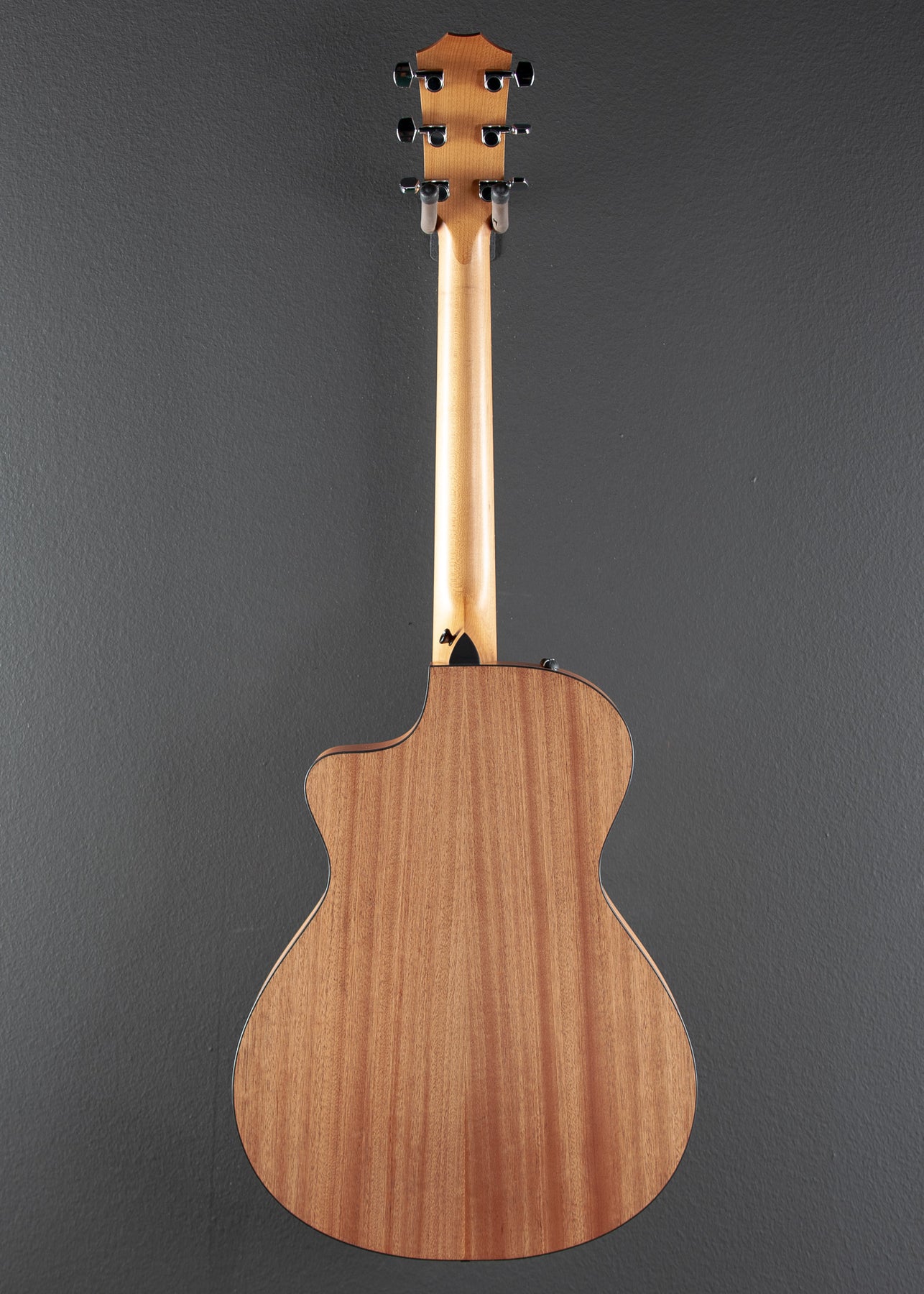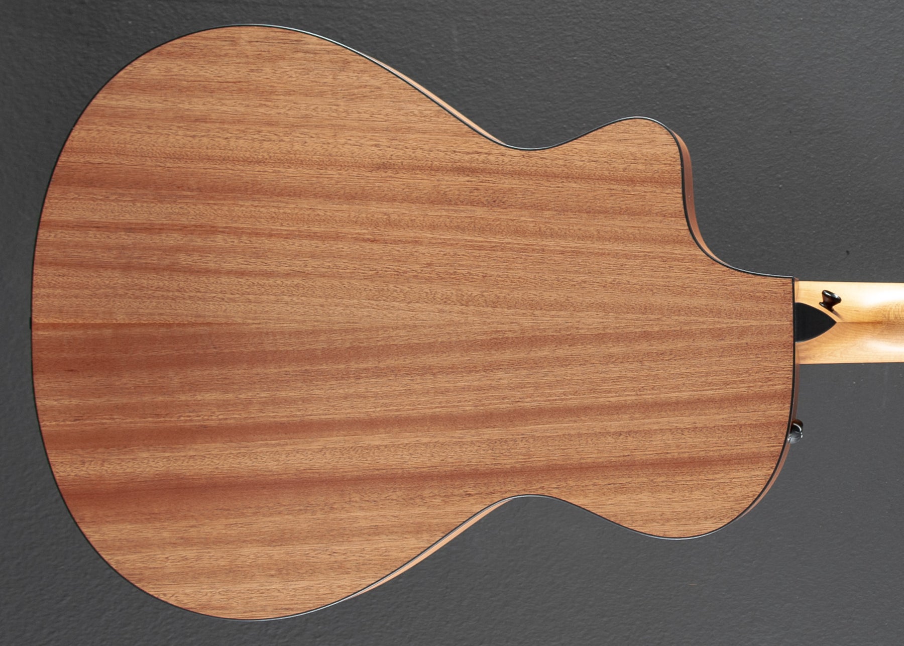 Natural, Matte finish, Grand Concert body shape with the venetian cutaway, Torrefied Spruce top, Three Ring Plastic Rosette, X bracing, Layered Sapele back and sides, Black binding, Eucalyptus fingerboard with the faux pearl 4mm dot inlays on a Hard Rock Maple neck, 24 7/8th” scale length, 1 11/16th” nut width, Cast/sealed tuners, The neck thickness is .83″ at the first and .87″ at the 9th frets, With the Expression 2 pickup system and gig bag, Excellent