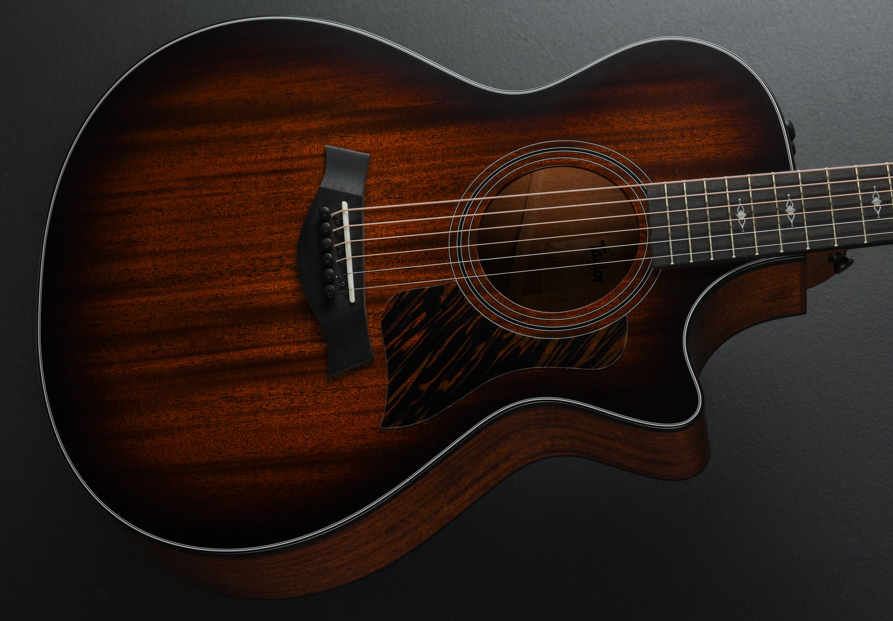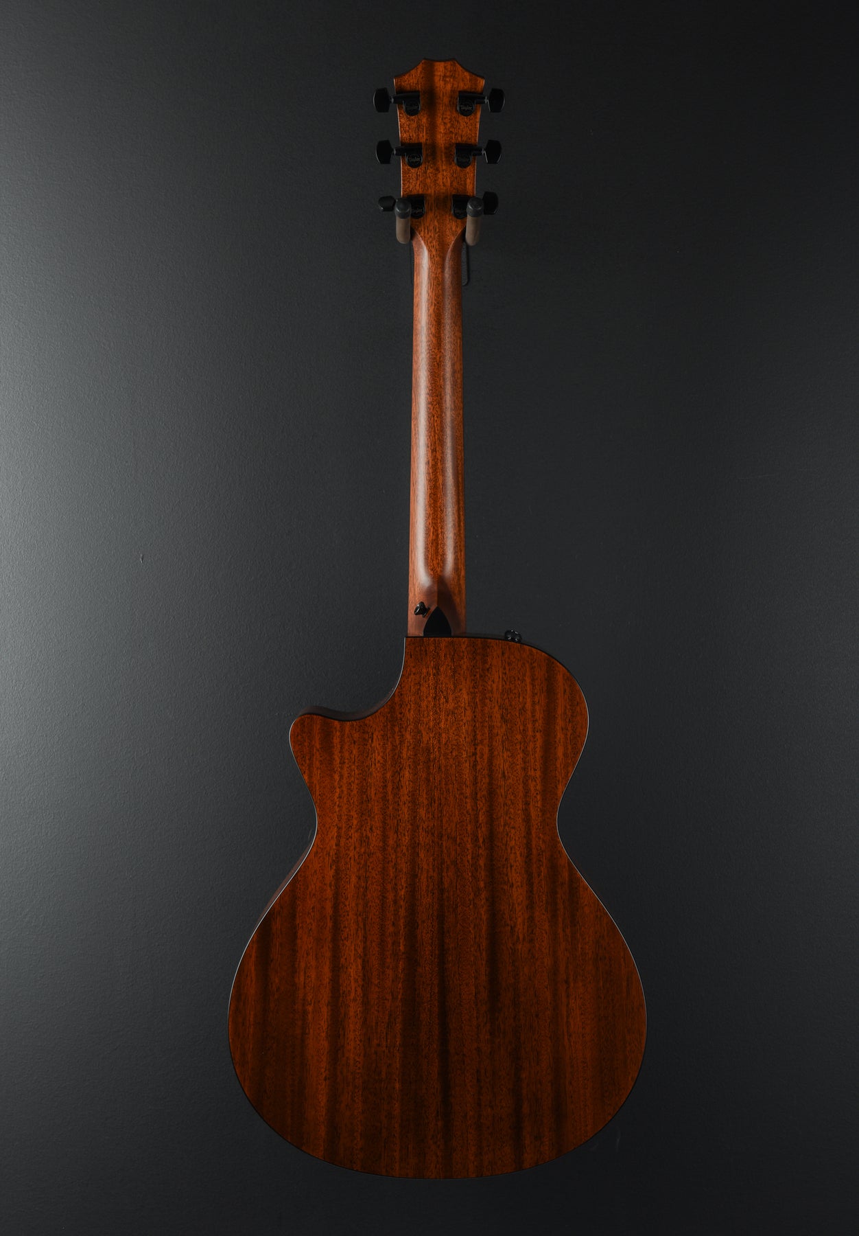 Very Good Condition, Shaded Edgeburst Top, Grand Concert Body Shape with the Venetian Cutaway, Tropical Mahogany Top, Black Three Ring Plastic Rosette, V-Class Bracing, Tropical Mahogany Back and Sides, Black Binding, West African Crelicam Ebony Fingerboard with the Faux Pearl Gemstone Inlays on a Tropical Mahogany Neck, 24 7/8th” Scale Length, 1 3/4” Nut Width, with the Expression 2 Pickup System and Hardshell Case.
