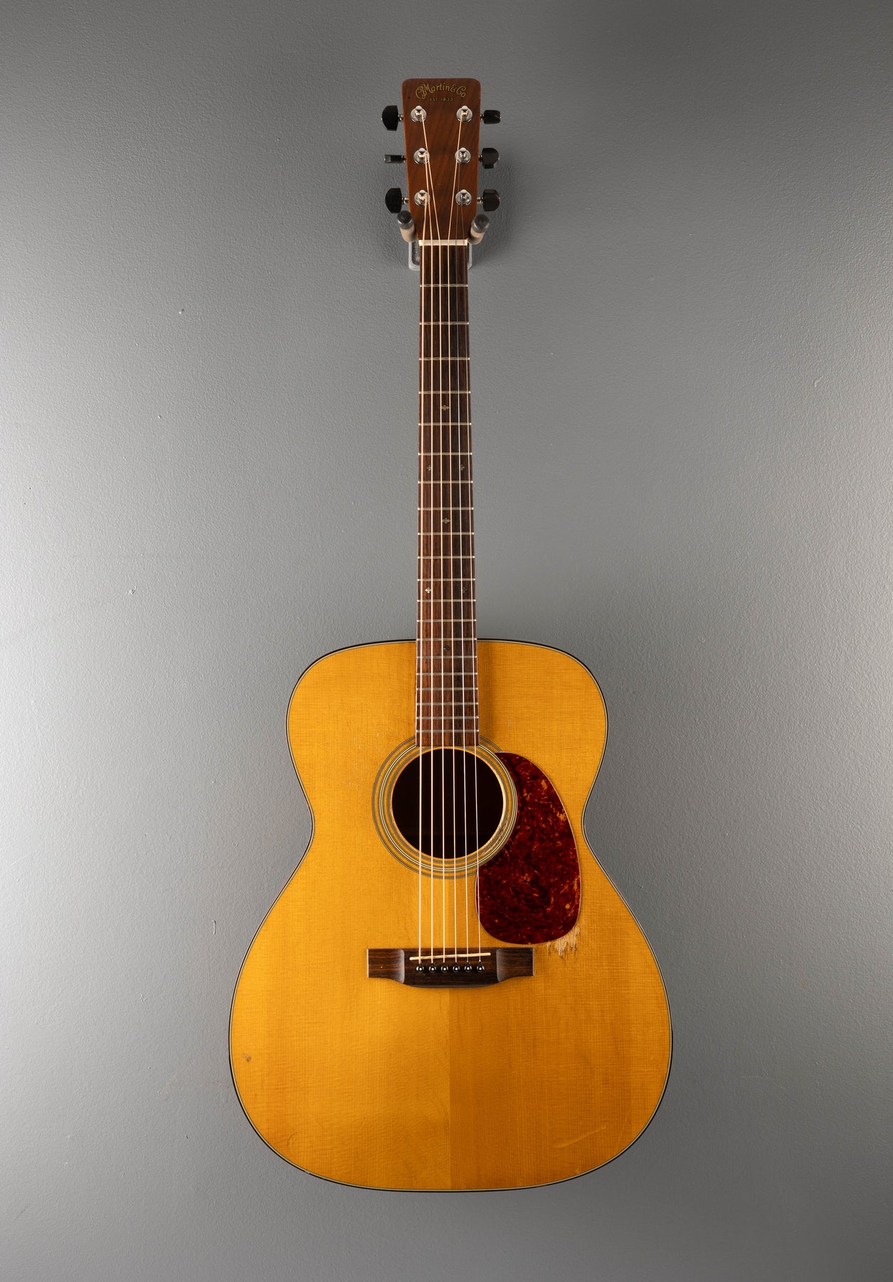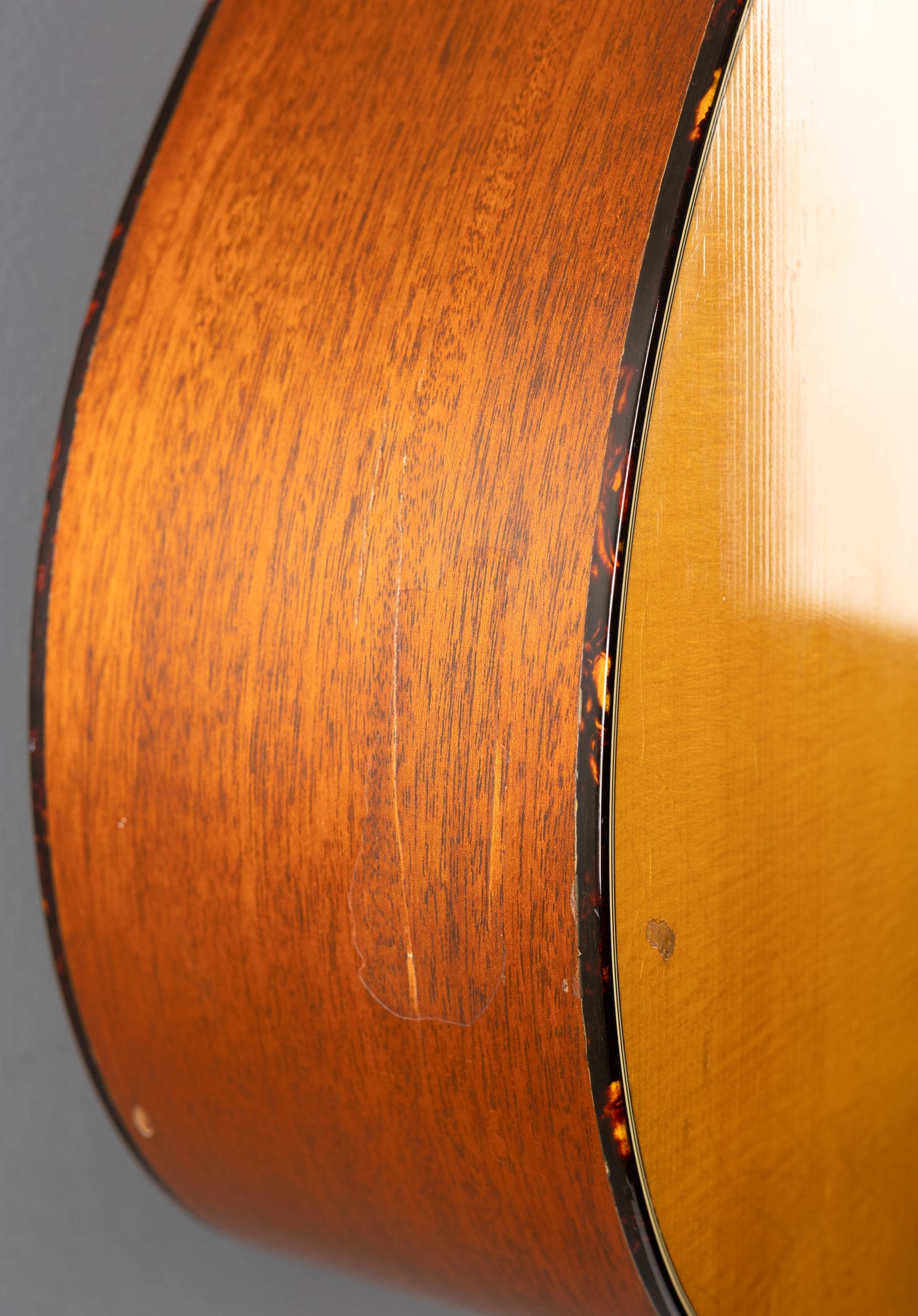 Good condition, Natural, Jumbo body shape, Spruce top, Scalloped X-bracing, Multi-stripe rosette, tortoiseshell binding, Mahogany back and sides, 16" radius Rosewood fingerboard on a Mahogany neck, 25.4" scale length, 1 11/16th" nut width, the neck measures .80" at the 1st and .87" at the 9th frets, Martin tuners with black buttons, With a hardshell case.